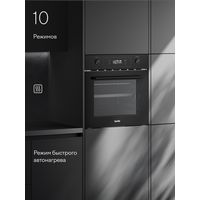 Tuvio NF74TTBGB1 — это встраиваемый духовой шкаф объёмом 70 л. Вместительный и удобный — подходит как для приготовления повседневных блюд, так и для запекания крупной птицы и мяса на семейные праздники. Для вкусных и сочных экспериментов есть 10 режимов приготовления: от размораживания и быстрого нагрева до специальных настроек для пиццы. Для готовых рецептов есть 7 автоматических программ SmartMenu. Чтобы быстро и без лишних усилий приготовить идеальные блюда или разогреть уже готовую еду.