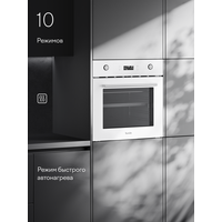 | Дополнительная информация | 2 уровня телескопических направляющих, решетчатые направляющие, утапливаемые переключатели, галогеновая лампочка, корпус духовки для паровой очистки; 11 режимов; дополнительные режимы: двойной гриль и обдув, верхний и нижний нагрев с обдувом; Smart Menu из 8 автоматических программ - режим сохранения тепла (расстойка теста), режим подогрева, режим приготовления тостов, режим выпекания пиццы, режим приготовления куриных ножек, режим приготовления хлеба, режим приготовления пирога, режим приготовления говядины |