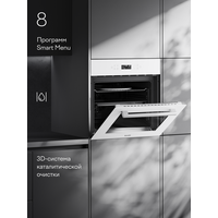 Для быстрого и простого ухода внутреннее пространство духовки оснащено каталитической 3D-системой очистки. Три специальные двусторонние панели установлены на задней и боковых стенках духовки. Теперь не нужно переключать духовой шкаф из режима готовки в режим очищения. Эти процессы идут параллельно и не влияют на вкус блюда: частички жира распадаются в результате каталитической реакции и поглощаются наночастицами без дополнительных энергозатрат. После духовку можно протереть влажной чистой тканью без добавления чистящих средств.