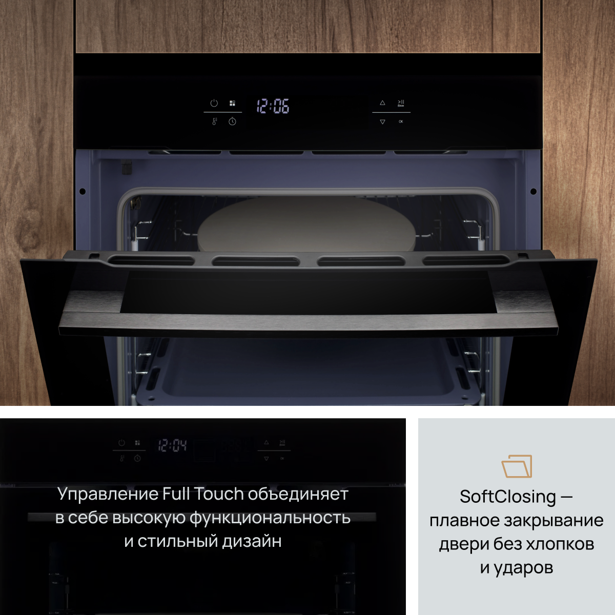 С технологией SoftClosing дверь духового шкафа закрывается плавно и без хлопков или ударов. Если у вас заняты руки, просто слегка подтолкните дверь, чтобы она вернулась в закрытое состояние