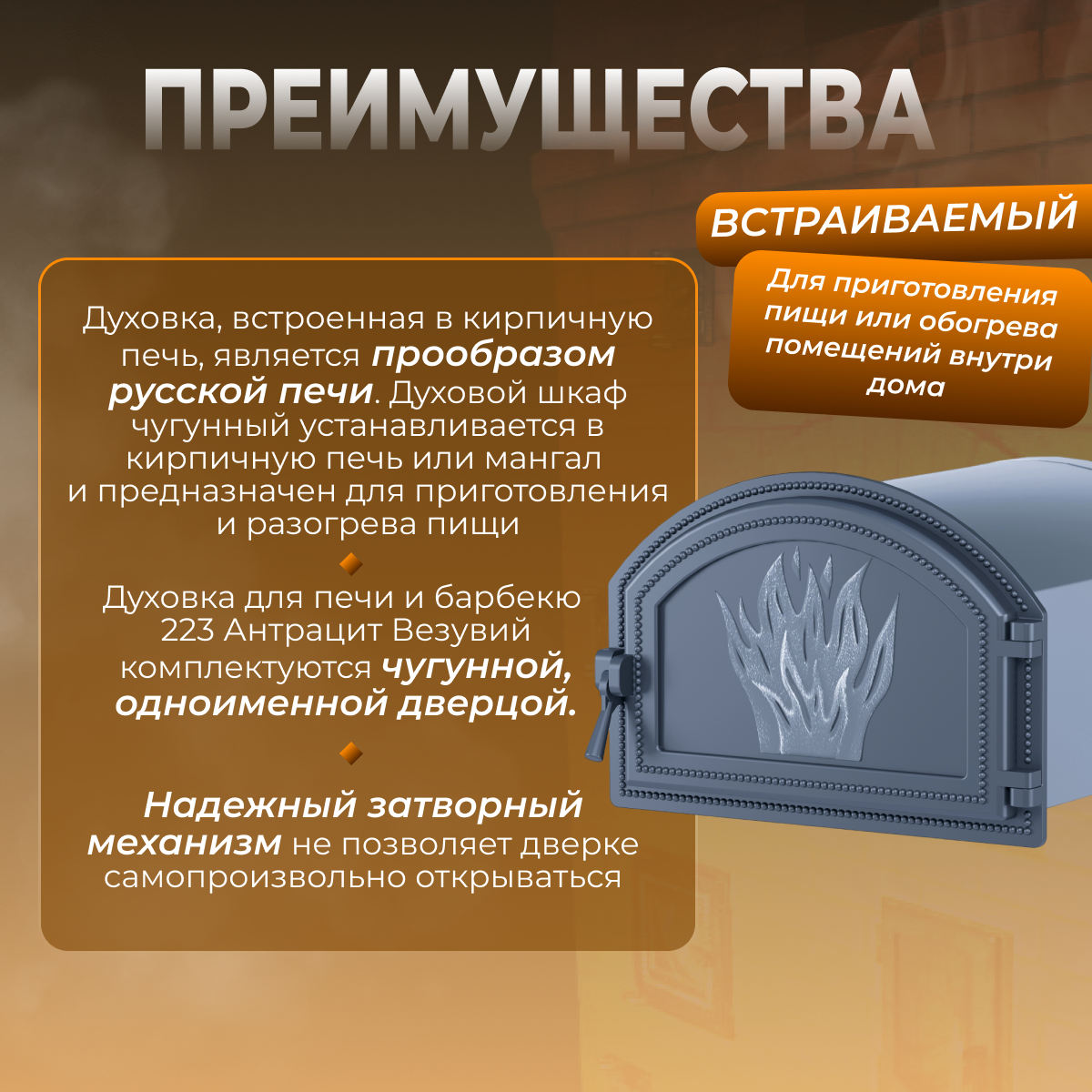 Духовой шкаф Везувий, встраиваемый, чугунная дверца, антрацитный цвет, 35×42,5×45 см: сравнение цен, характеристики, фото, актуальное наличие и цены.