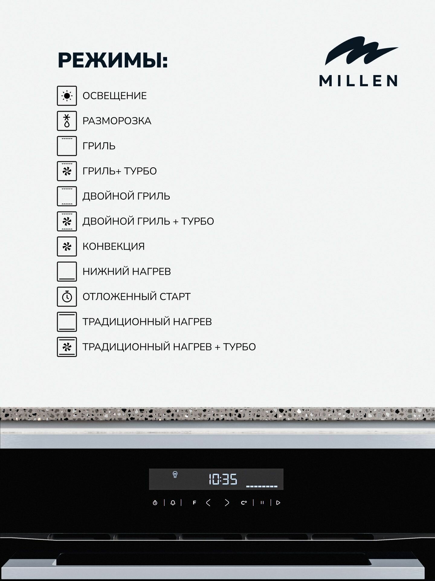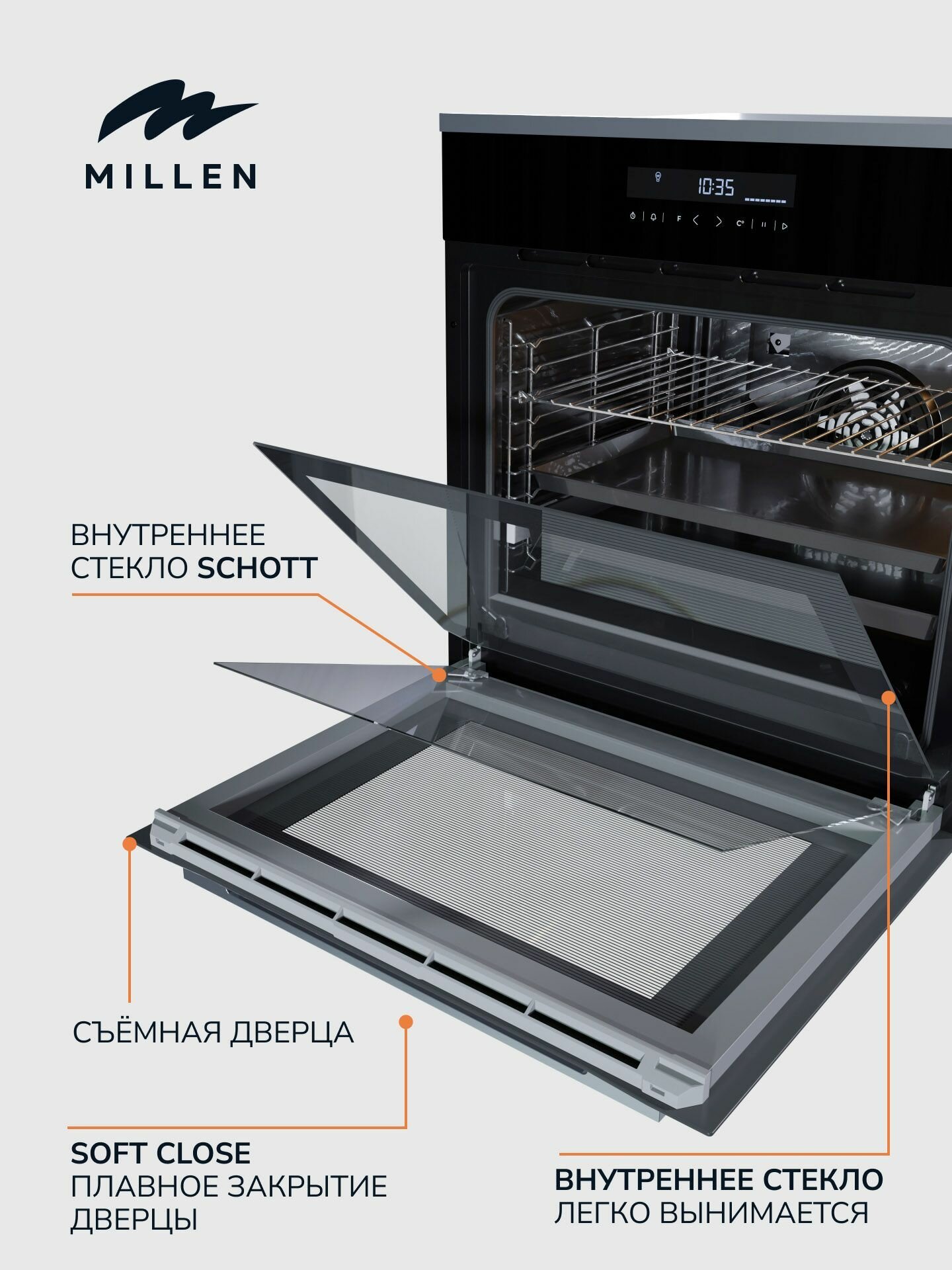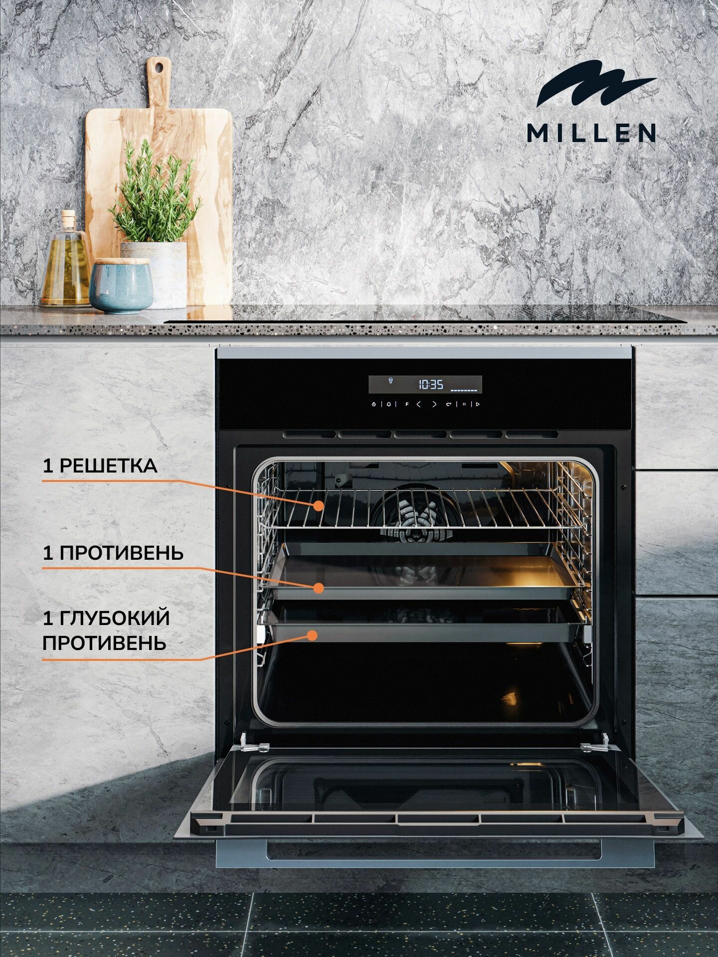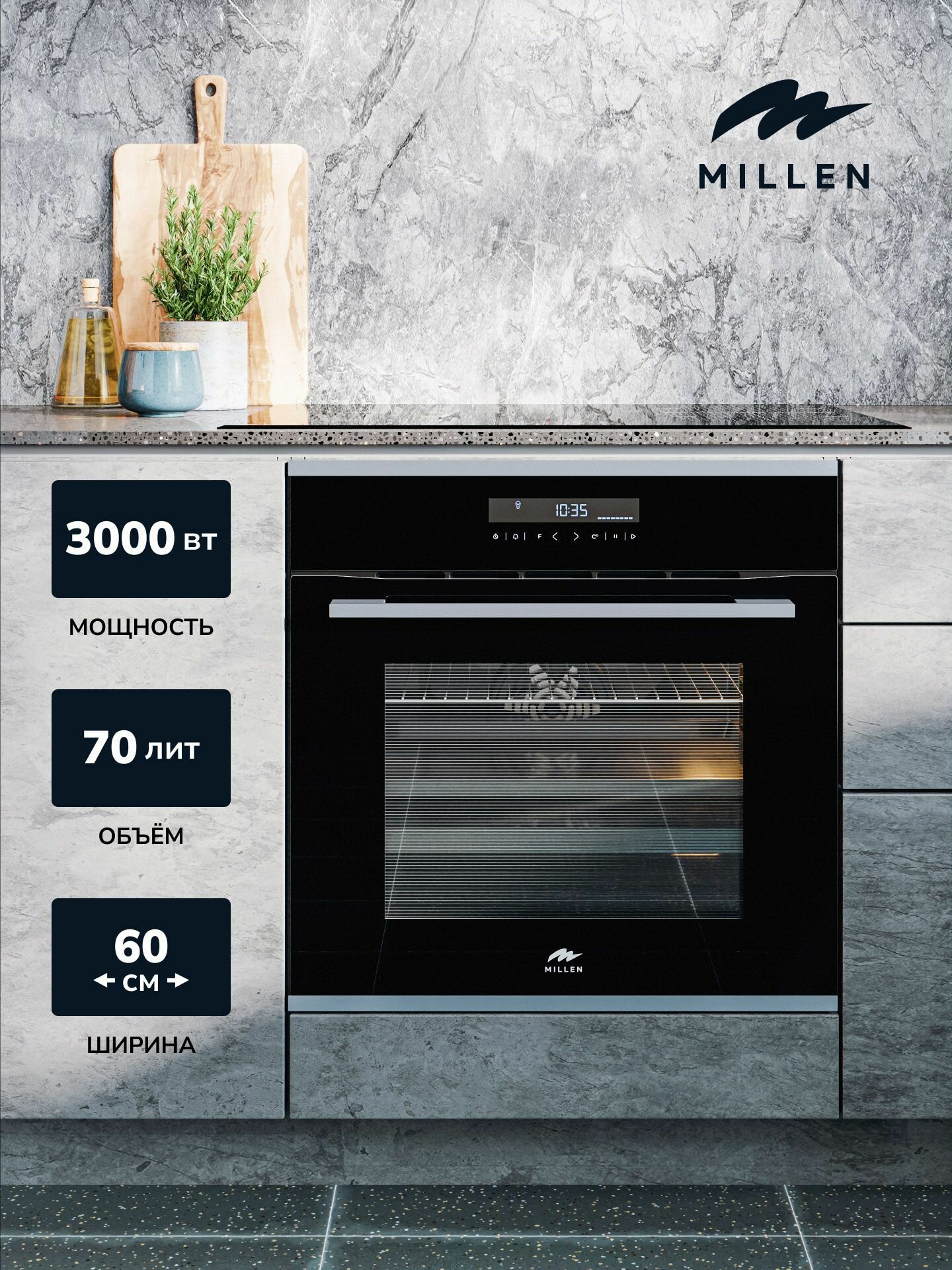 Духовой шкаф встраиваемый электрический MILLEN MEO 603 IX, серый металлик с таймером, конвекция, объем 70л, 10 режимов, сенсорное управление телескопические направляющие: сравнение цен, характеристики, фото, актуальное наличие и цены.