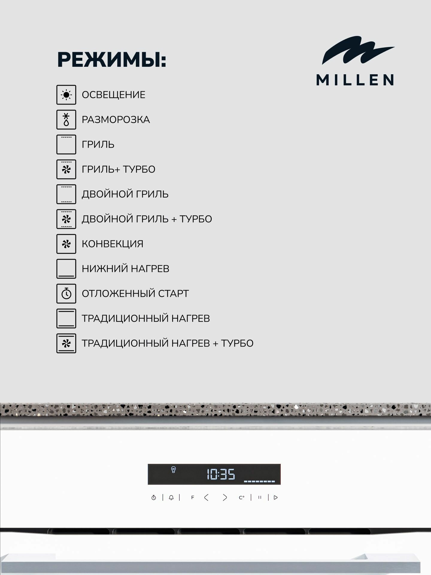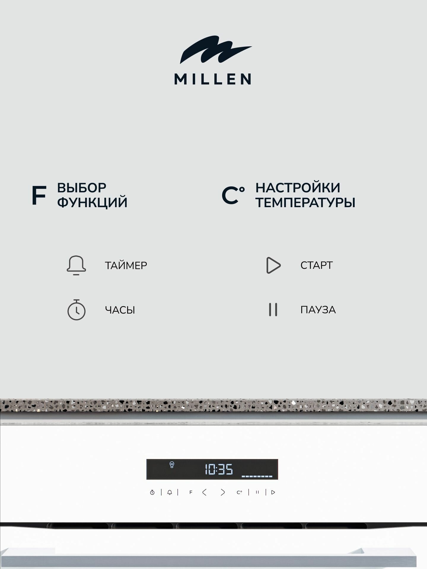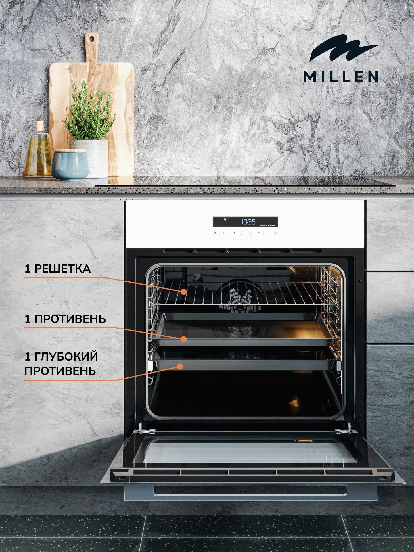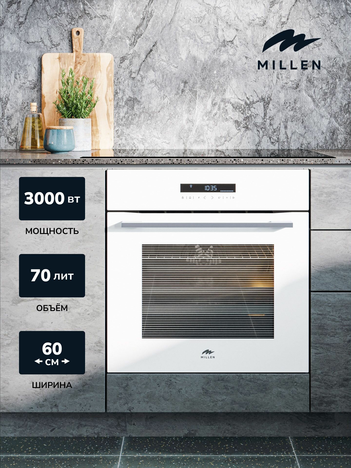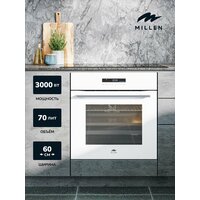 Духовой шкаф встраиваемый электрический MILLEN MEO 603 WH, белый с таймером, конвекция, объем 70л, 10 режимов, сенсорное управление телескопические направляющие: сравнение цен, характеристики, фото, актуальное наличие и цены.