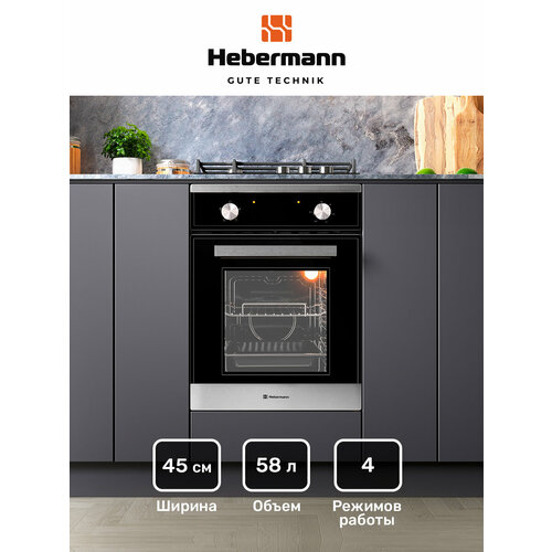 Духовой шкаф встраиваемый HBBO 4504.1 X, черный, верхний и нижний нагрев, 1 решетка и 1 глубокий противень, Объем духовки 58 л, двойное стекло у дверцы, 4 режима работы, отделка фасада-стекло+нержавеющая сталь.: сравнение цен, характеристики, фото, актуальное наличие и цены.