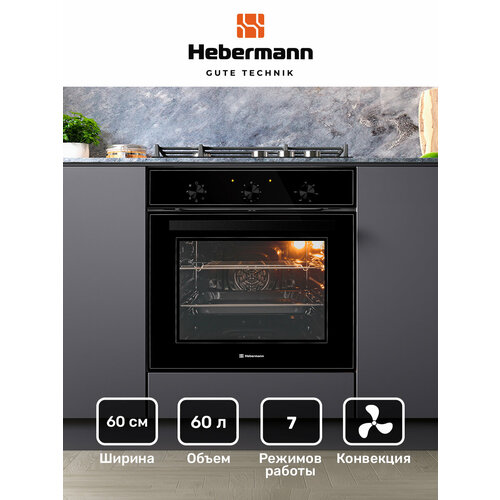 Духовой шкаф электрический встраиваемый Hebermann HBBO 6007.1 B, усиленный гриль + конвекция, размораживание, 1 решетка и 1 глубокий противень,7 режимов работы, отделка фасада-стекло.: сравнение цен, характеристики, фото, актуальное наличие и цены.
