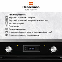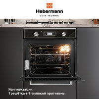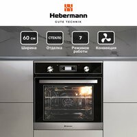 Духовой шкаф электрический встраиваемый Hebermann HBBO 6007.2 X , черный, усиленный гриль + конвекция, размораживание, объем духовки 60 л, двойное стекло у дверцы, 7 режимов работы.: сравнение цен, характеристики, фото, актуальное наличие и цены.