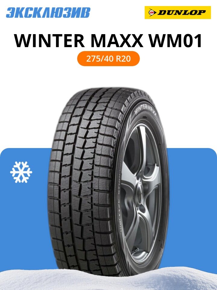Dunlop Winter Maxx WM01 275/40 R20 102T Run Flat. Зимняя нешипованная шина Dunlop Winter Maxx WM01 предназначена для большинства легковых автомобилей. Благодаря уникальному дизайну протектора модель Winter Maxx WM01 обладает высоким уровнем комфорта и безопасности. Запатентованная формула резиновой смеси с силикой и высокомолекулярным полимером помогает шине более плотно прилегать к поверхности дороги. Автошина Dunlop Winter Maxx WM01 обладает надежным сцеплением и эффективным торможением на мокрой, заснеженной и сухой дорогах. -Использование ламелей Miura Ori с увеличенным числом граней предотвращает подламывание блоков и обеспечивает надежный контакт с обледенелой поверхностью. -Боковина шины выполнена из прочного и эластичного материала обеспечивающего противостояние повреждениями и высокий уровень комфорта. -Широкие основные и боковые канавки эффективно спрессовывают и удерживают снег в пятне контакта. ю значительно улучшая сцепление шины на снегу. -Зубчатые грани плечевых блоков протектора повышают устойчивость автомобиля на снегу, обеспечивая дополнительную фиксацию шины при маневрировании.