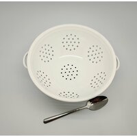 Дуршлаг Эффект эмали, металл/эмалированный, белый/темно-синий, с ложкой, 24×27,5 см: сравнение цен, характеристики, фото, актуальное наличие и цены.