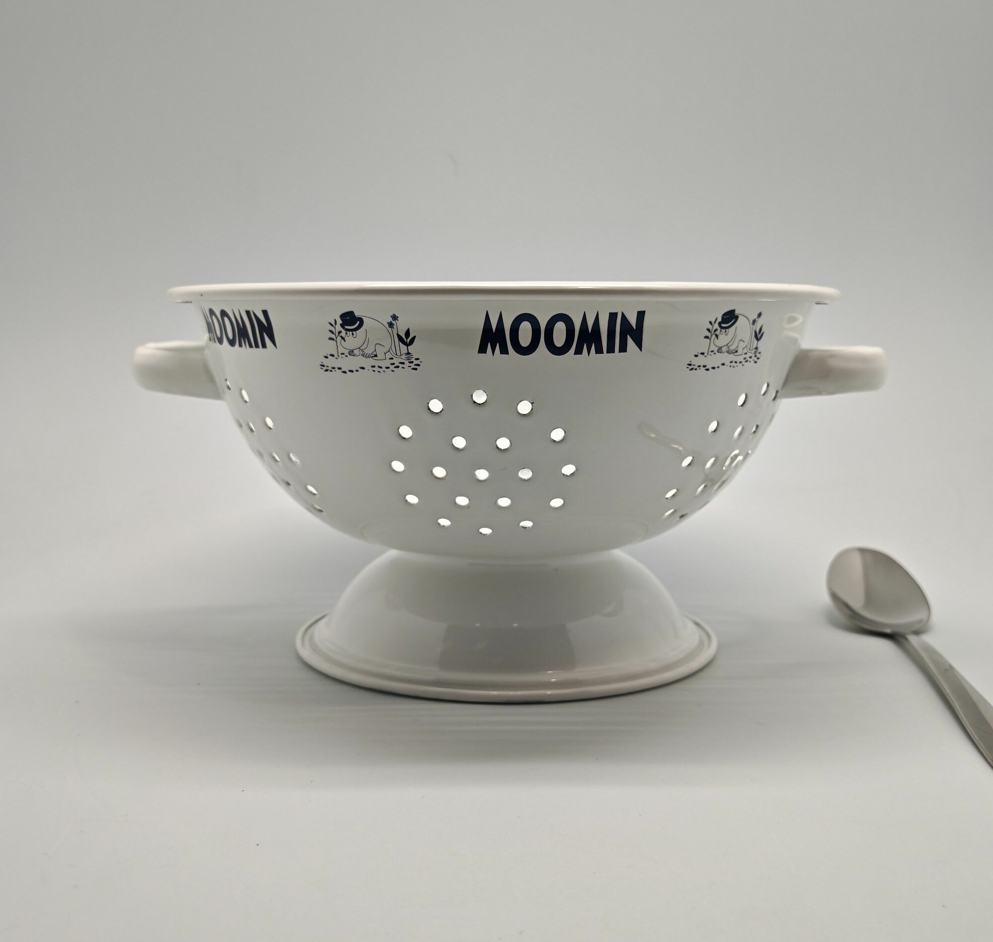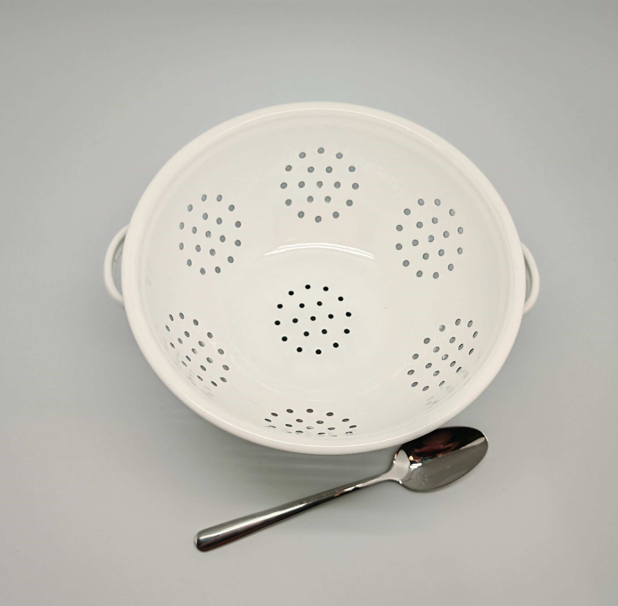 Купить Дуршлаг Эффект эмали, металл/эмалированный, белый/темно-синий, с ложкой, 24×27,5 см с доставкой по всей России.