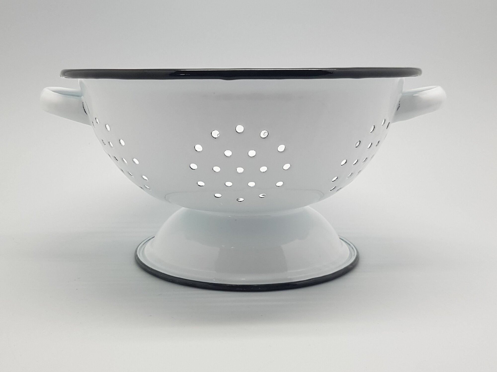 Эмалированный круглый дуршлаг оснащен удобными ручками по бокам и обладает рядом достоинств: хорошо моется (можно мыть в посудомоечной машине), не вступает в реакцию с пищевыми кислотами, тем самым сохраняется вкус пищи, а также имеет длительный срок службы.