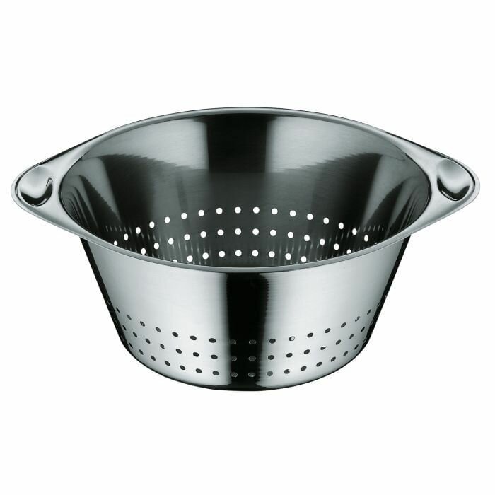 Дуршлаг от WMF - незаменимый помощник на любой кухне. Промываете ли вы овощи и фрукты или процеживаете макароны, его крупное отверстие обеспечивает надежный и быстрый слив воды. Этот дуршлаг из нержавеющей стали продуман до мельчайших деталей и обеспечивает безопасное и легкое использование в повседневной жизни благодаря устойчивому, приподнятому основанию и эргономичным боковым ручкам. Изготовленный из высококачественной полированной нержавеющей стали Cromargan®: 18/10, дуршлаг безопасен для мытья в посудомоечной машине и поэтому легко очищается. Оптимизированное процеживание - увеличенная структура отверстий обеспечивает безопасное и быстрое стекание воды. - Устойчивость - Три точки на основании служат опорой и обеспечивают дополнительную устойчивость. - Удобство использования - Боковые ручки эргономичной формы облегчают работу и защищают пальцы от ожогов горячими ингредиентами. Изготовлен из прочной, полированной Cromargan®: нержавеющая сталь 18/10 для исключительной долговечности и оптимальной гигиены. Нейтральный вкус, устойчивость к пищевым кислотам, стойкость цвета и простота очистки. - Качество, безопасное для посудомоечной машины - изготовленный в соответствии со строгими критериями качества и с особой тщательностью, этот дуршлаг можно без труда мыть в посудомоечной машине.