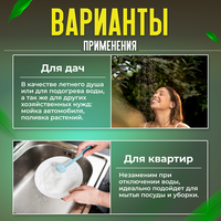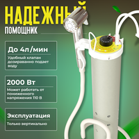 Дачный душ дает возможность принять полноценный горячий душ, помыть посуду или машину. Устройство незаменимо для дач, домов, квартир при отсутствии или отключении горячей воды. Водонагреватель работает от безопасного напряжения 12 В и подает воду в душ при помощи насоса с производительность до 4 л/мин. Нагревает воду от 10 до 50 градусов – оптимальная температура для очистки загрязнений. Датчики уровня воды и наклона ограничивают рабочее положение устройства, не позволяя работать ТЭНу без воды. Диапазон напряжений от 110 до 250 В безопасен для человека и электросети даже при нестабильном напряжении. Душ имеет компактный размер 36х11х8 см: легко помещается в хозяйственную сумку, удобно брать с собой. Обратите внимание! Эксплуатация изделия возможна только вертикально. Насос - центробежный, поэтому как все бытовые центробежные насосы (аквариумные, садовые) может работать в холостом режиме бесконечно (при закрытом кране на выходе). Обязательное условие насос должен быть полностью погружен в воду. Допускается кратковременная работа данного центробежного насоса без воды (на сухую) не более 3 минут. Энергия - российская компания, создающая качественную и умную технику для дома и офиса. Ионизаторы, озонаторы воды и воздуха, увлажнители, воздухоочистители и другие устройства привнесут необходимый комфорт в вашу жизнь.