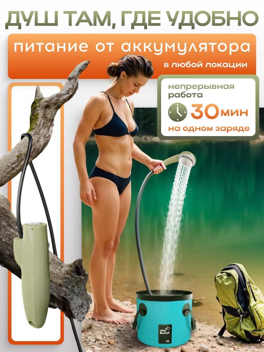 Душ походный, переносной, с насосом, с индикатором заряда, зеленый, аккумуляторный, 20л: сравнение цен, характеристики, фото, актуальное наличие и цены.