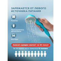Душ садовый работает от встроенного аккумулятора 5 В/1A 2200 мАч, который легко заряжается от бытовой сети, автомобильного аккумулятора или с помощью USB-кабеля (идет в комплекте).