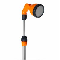 Летний душ TG7203023 предназначен для использования на садовом участке в летний период. Изделие изготовлено из высококачественных материалов: алюминия и пластика. Душ легко собирается и устанавливается, не занимает много места. Распылитель монтируется на прочной штанге толщиной 19 мм с треногой и пикой, высота которой регулируется в пределах от 1,65 до 2,25 м. Оснащен подвижной головкой с широким рассеиванием струи. Подключение к системе водоснабжения осуществляется с помощью муфты быстрого соединения. Диаметр соединения - 1/2 дюйма. Включение/выключение, а также регулировка расхода воды осуществляется одной рукой.