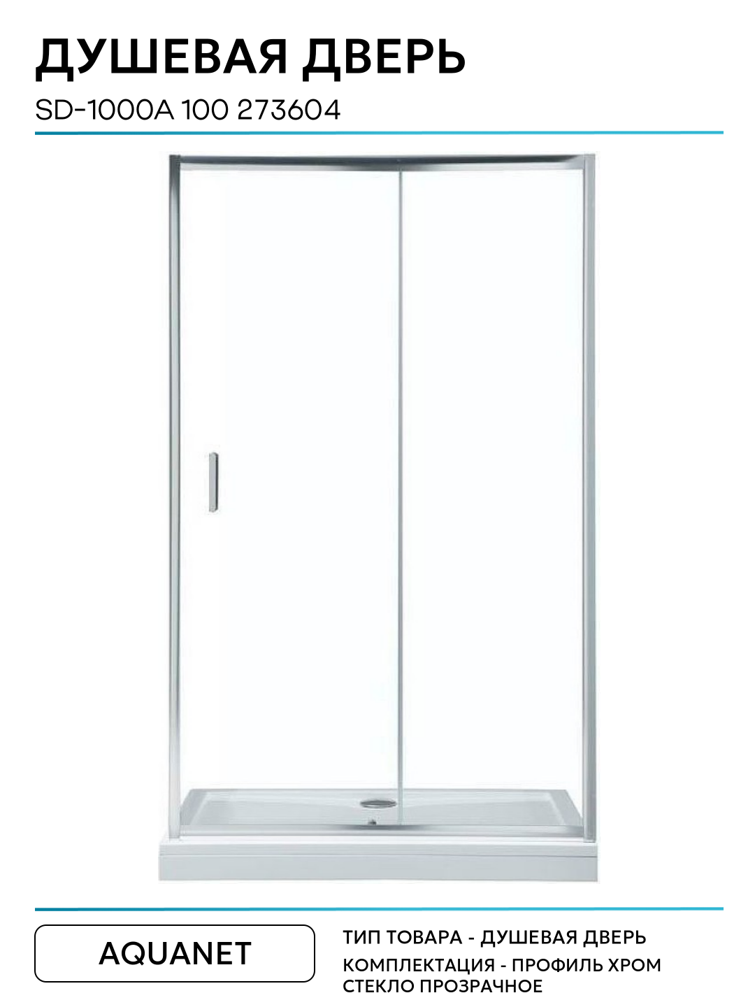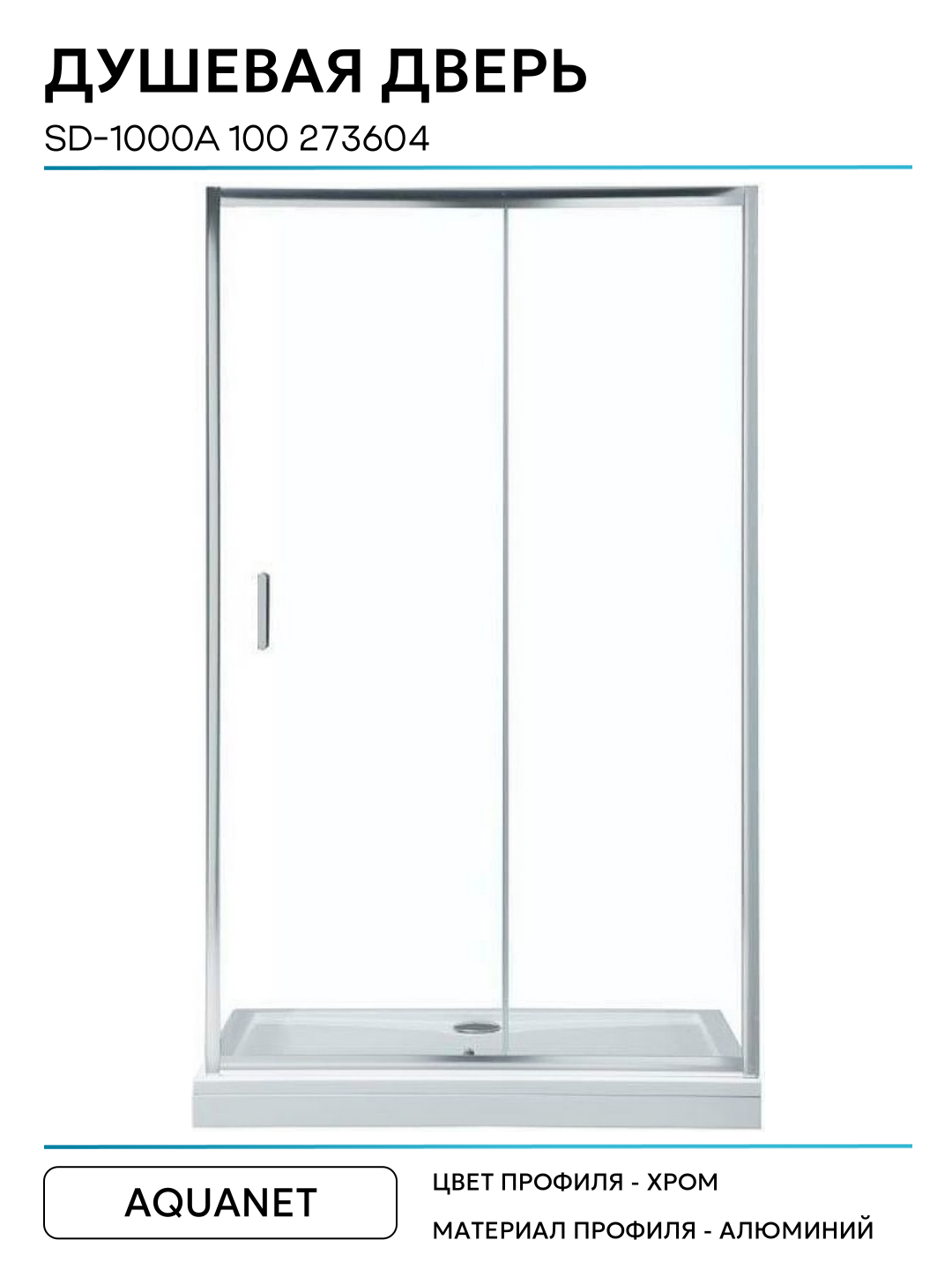 Душевая дверь Aquanet SD-1000A 100 273604 профиль Хром стекло прозрачное алюминий хром Россия: сравнение цен, характеристики, фото, актуальное наличие и цены.