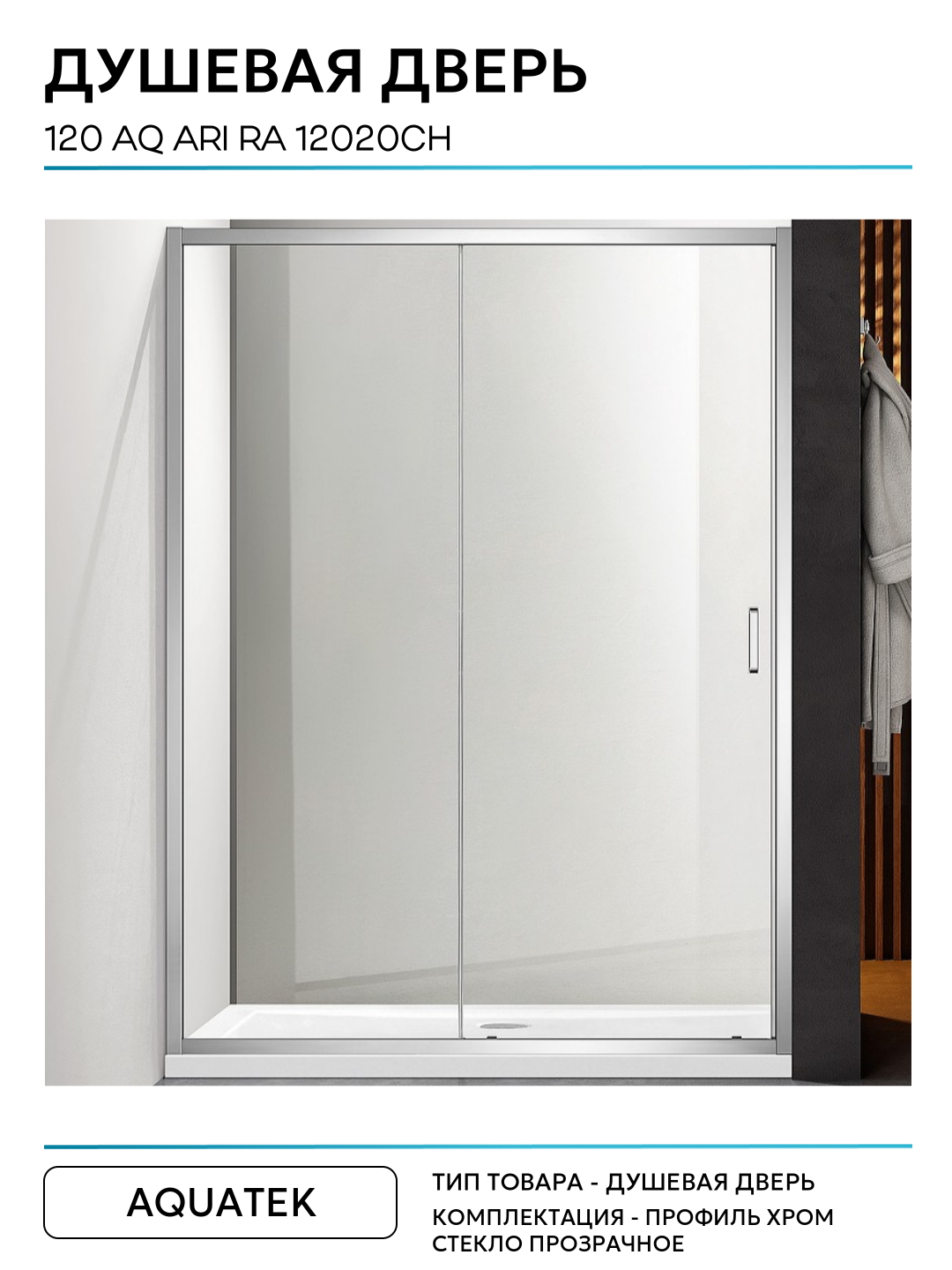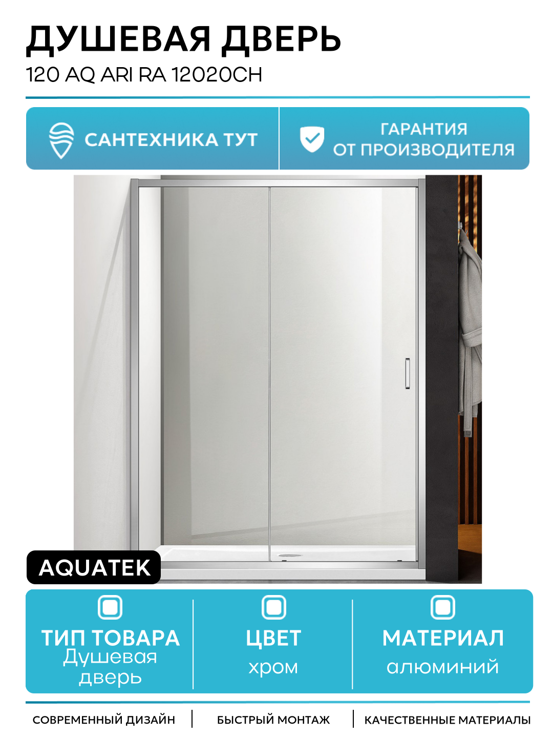 Душевая дверь Aquatek 120 AQ ARI RA 12020CH профиль Хром стекло прозрачное алюминий хром Россия: сравнение цен, характеристики, фото, актуальное наличие и цены.