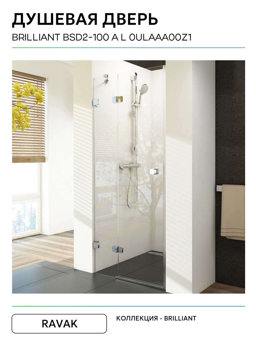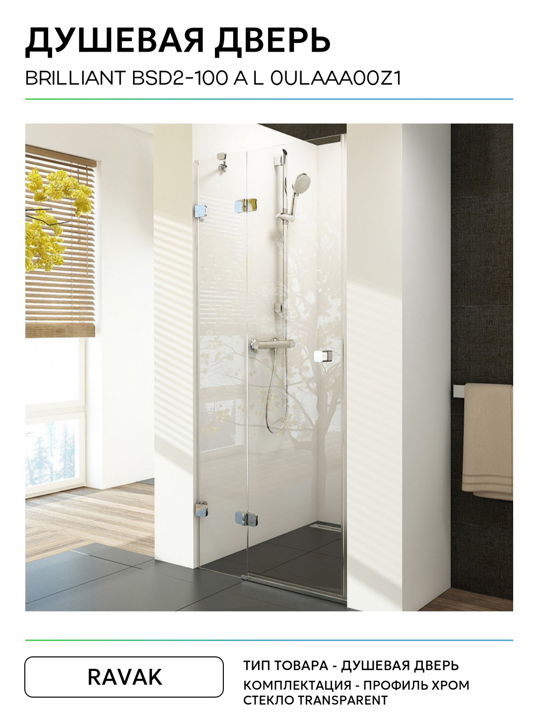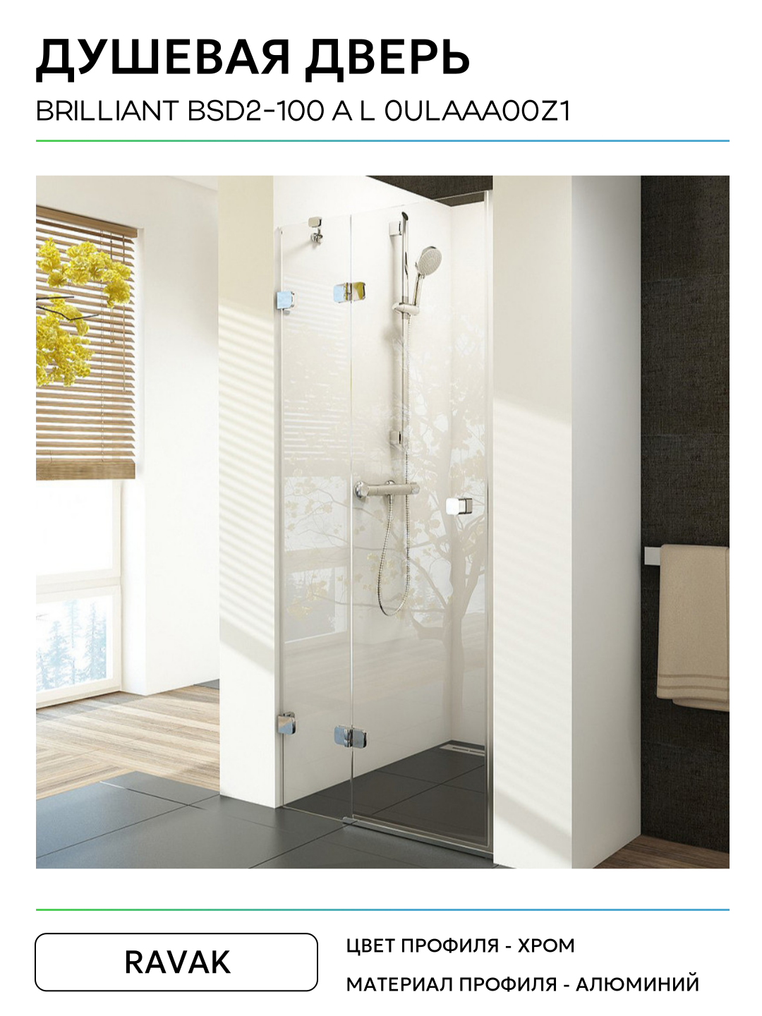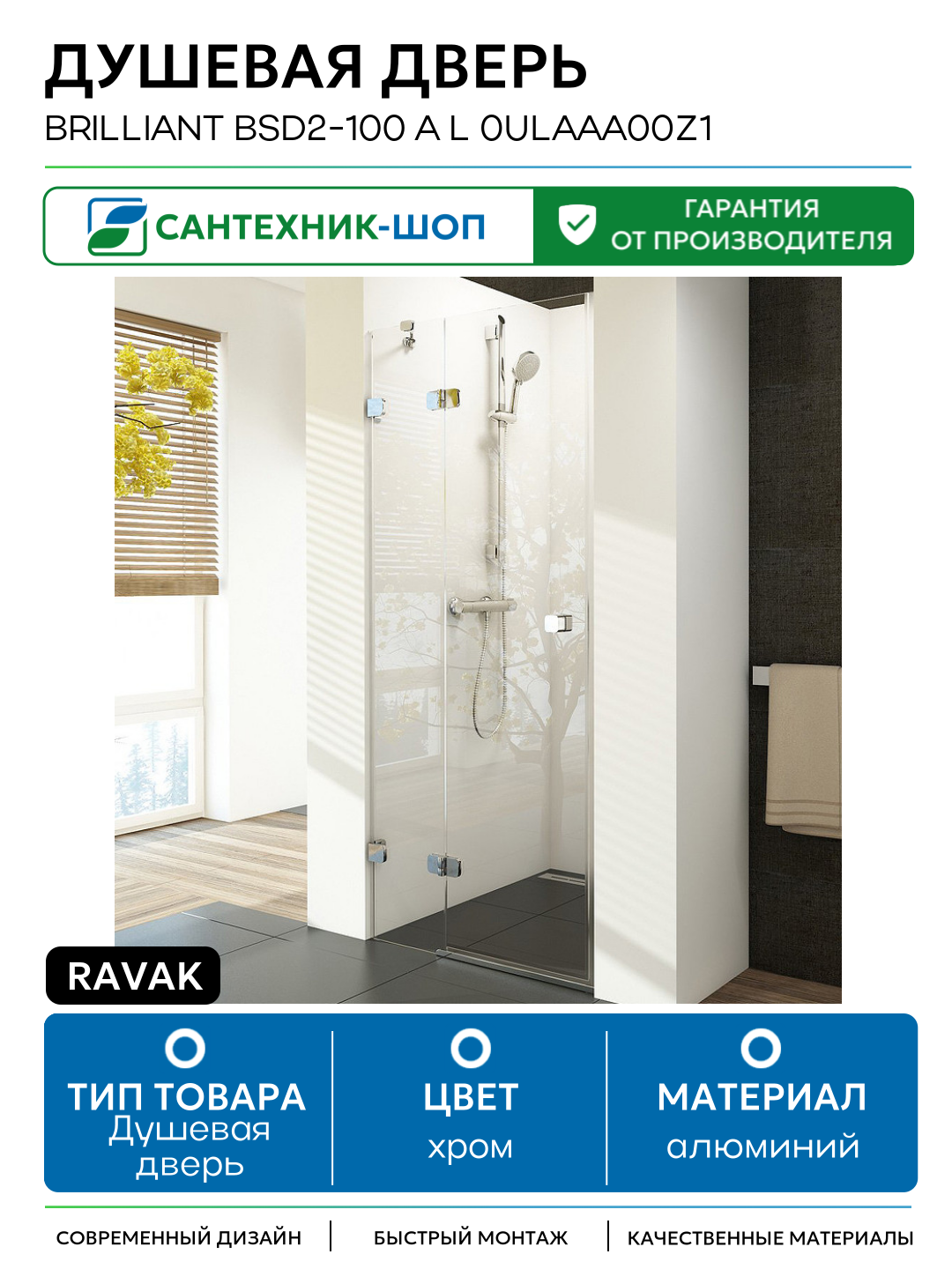 Душевая дверь Ravak Brilliant BSD2-100 A L 0ULAAA00Z1 профиль Хром стекло Transparent алюминий хром: сравнение цен, характеристики, фото, актуальное наличие и цены.