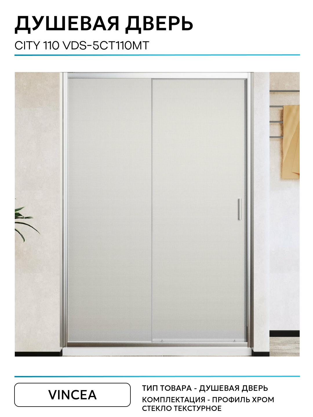 Купить Душевая дверь Vincea City 110 VDS-5CT110MT профиль Хром стекло текстурное алюминий хром Италия с доставкой по всей России.