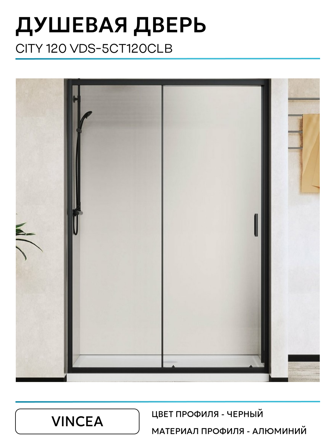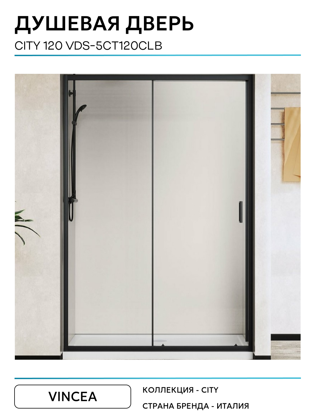 Купить Душевая дверь Vincea City 120 VDS-5CT120CLB профиль Черный стекло прозрачное алюминий черный Италия с доставкой по всей России.