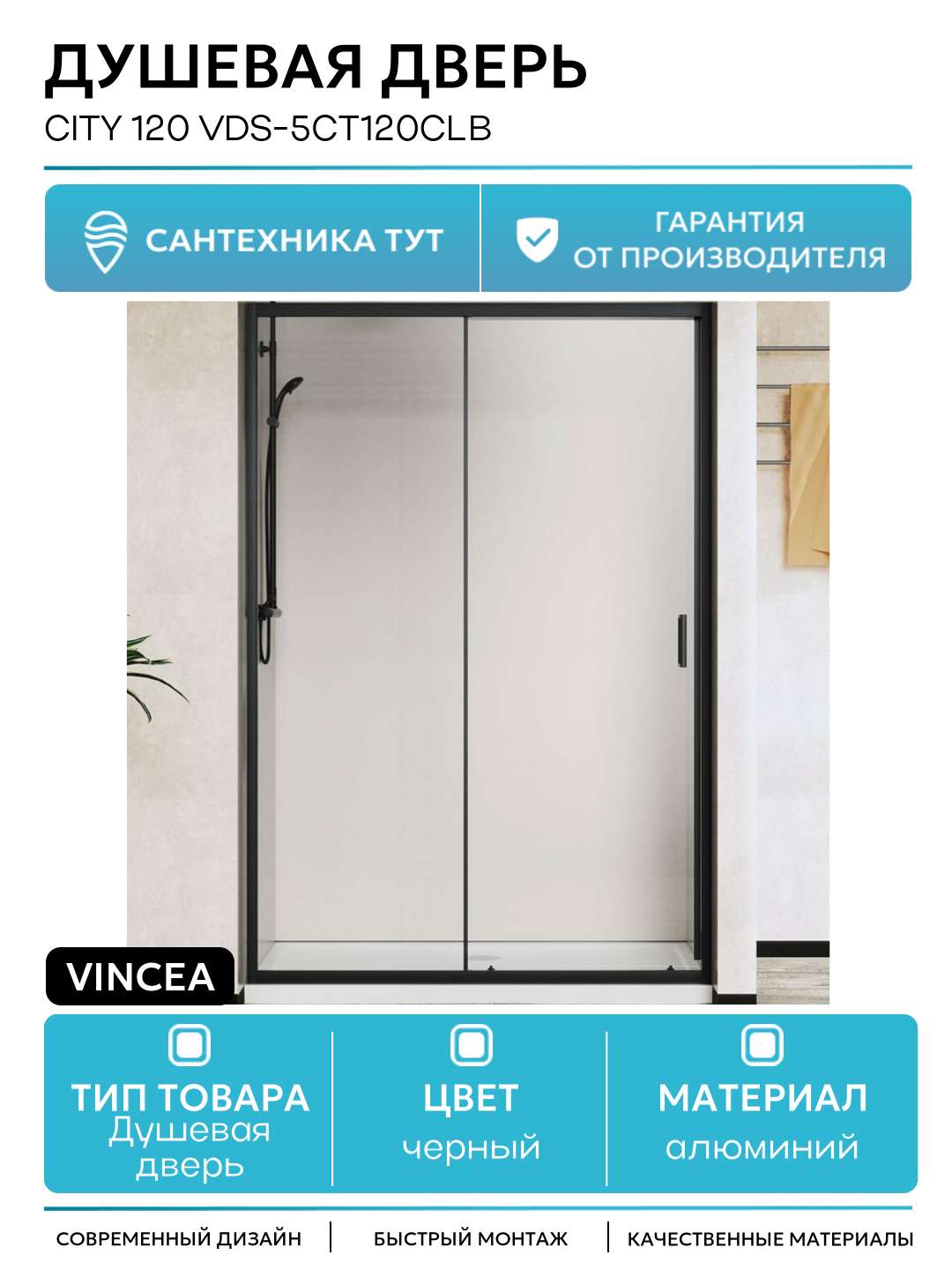 Душевая дверь Vincea City 120 VDS-5CT120CLB профиль Черный стекло прозрачное алюминий черный Италия: сравнение цен, характеристики, фото, актуальное наличие и цены.
