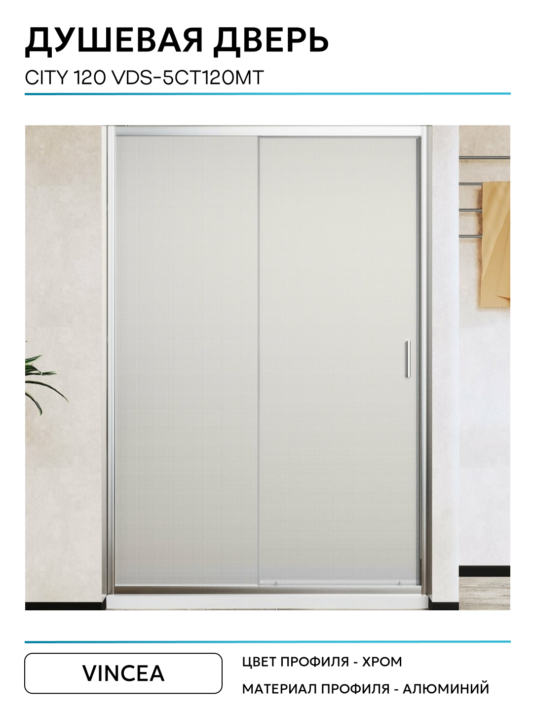 Купить Душевая дверь Vincea City 120 VDS-5CT120MT профиль Хром стекло текстурное алюминий хром Италия с доставкой по всей России.