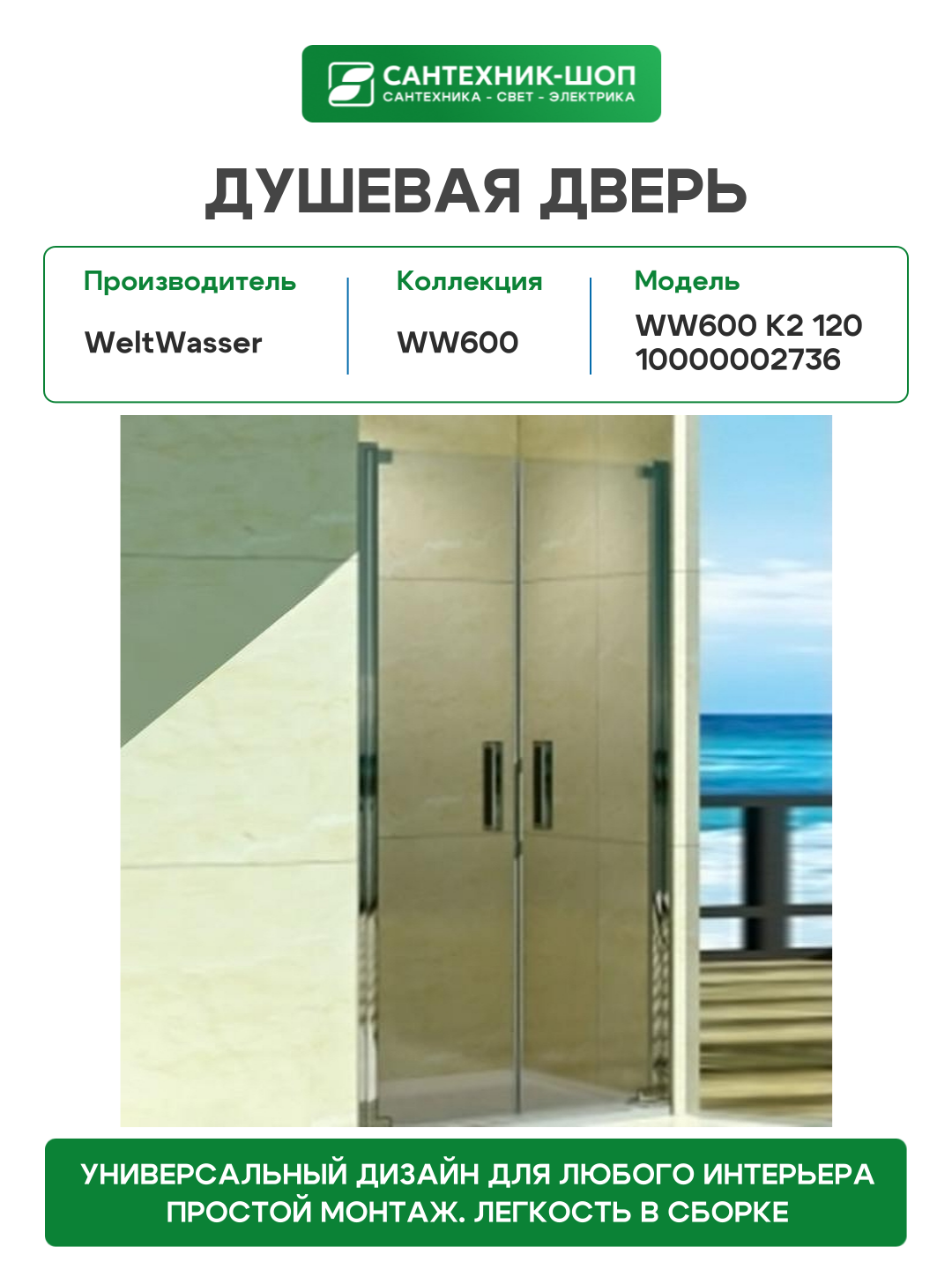 Купить Душевая дверь в нишу WeltWasser WW600 K2 120 10000002736 профиль Хром стекло прозрачное с доставкой по всей России. Душевая дверь в нишу WeltWasser WW600 K2 120 10000002736 профиль Хром стекло прозрачное: сравнение цен, характеристики, фото, актуальное наличие и цены.