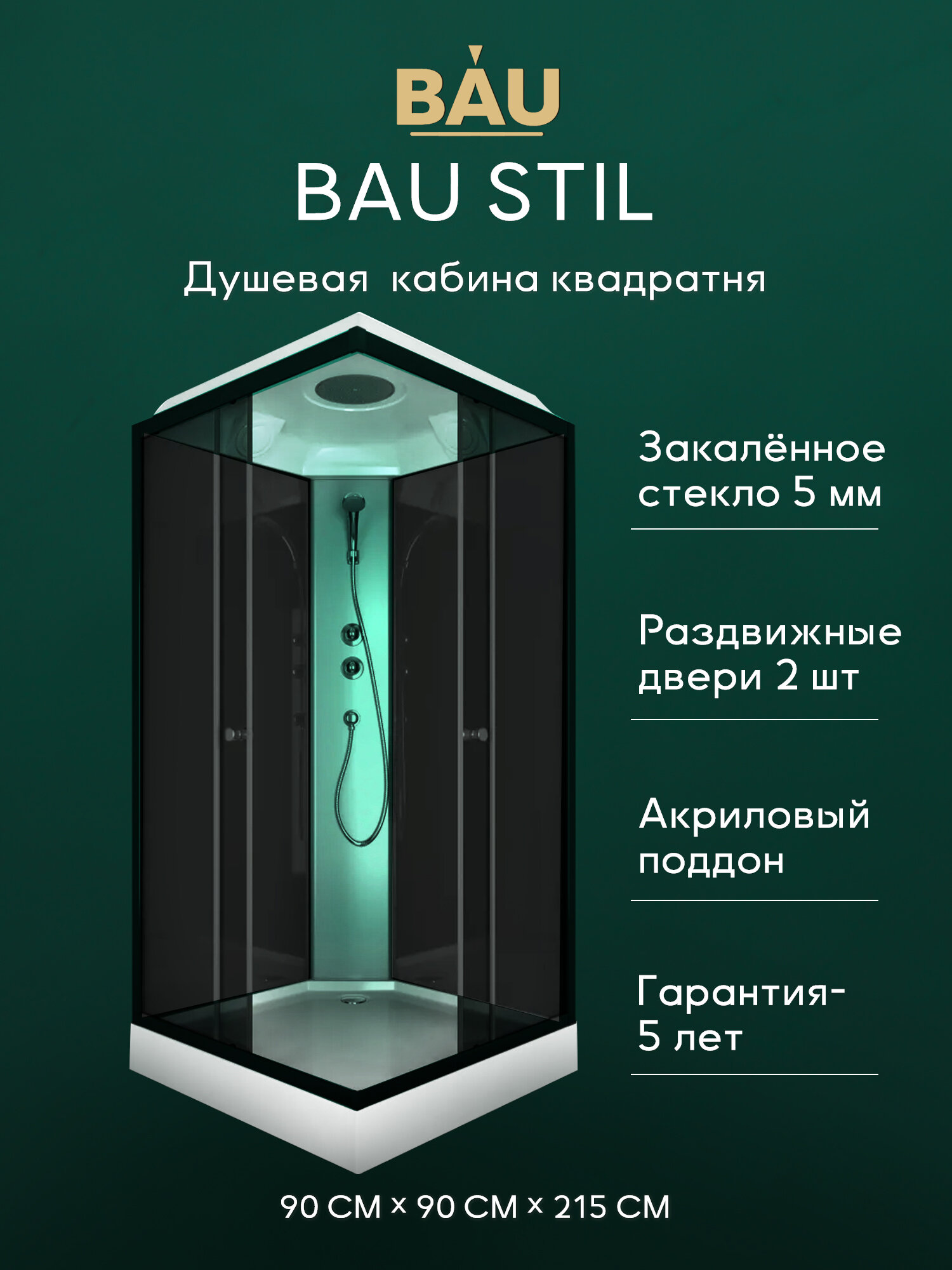 Купить Душевая кабина BAU Stil квадратныая с поддоном 90×90х215, тонированные передние закаленные стекла, черные задние стенки, черный матовый профиль с доставкой по всей России. Душевая кабина BAU Stil квадратныая с поддоном 90×90х215, тонированные передние закаленные стекла, черные задние стенки, черный матовый профиль: сравнение цен, характеристики, фото, актуальное наличие и цены.
