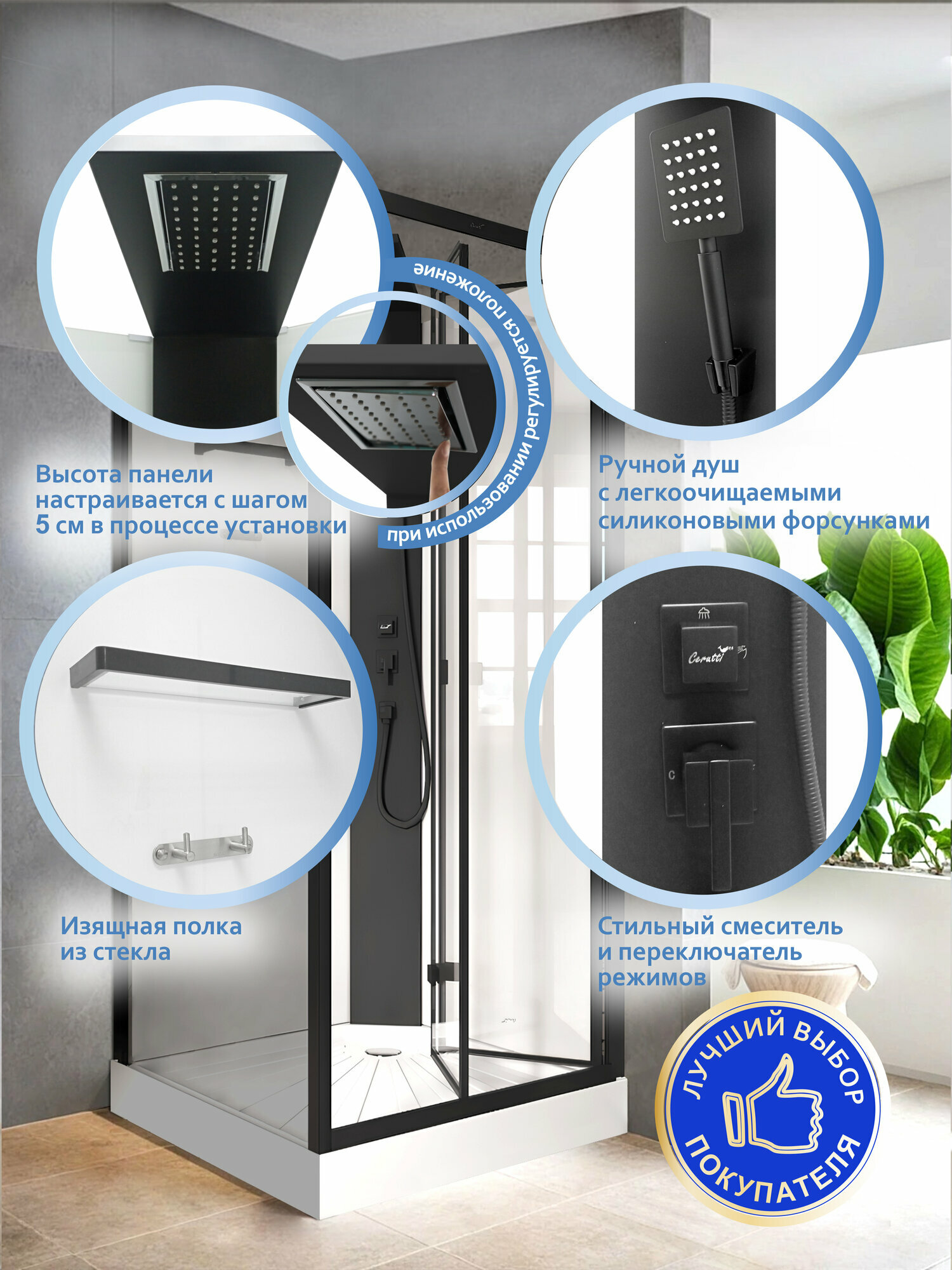 Купить Душевая кабина Ceruttispa BELLA 90B (90x90x215-225), центральная панель С душем И лейкой, с низким поддоном, профиль черный, стекло прозрачное с доставкой по всей России. Душевая кабина Ceruttispa BELLA 90B (90x90x215-225), центральная панель С душем И лейкой, с низким поддоном, профиль черный, стекло прозрачное: сравнение цен, характеристики, фото, актуальное наличие и цены.