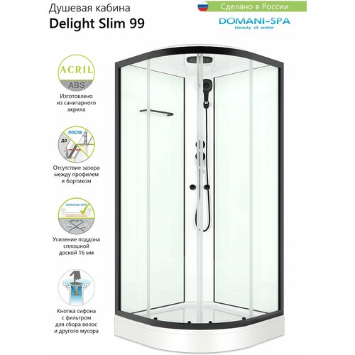 Купить Душевая кабина Domani-Spa Delight Slim угловая 90х90 белая, черный профиль, низкий поддон, с функцией тропический душ с доставкой по всей России. Душевая кабина Domani-Spa Delight Slim угловая 90х90 белая, черный профиль, низкий поддон, с функцией тропический душ: сравнение цен, характеристики, фото, актуальное наличие и цены.