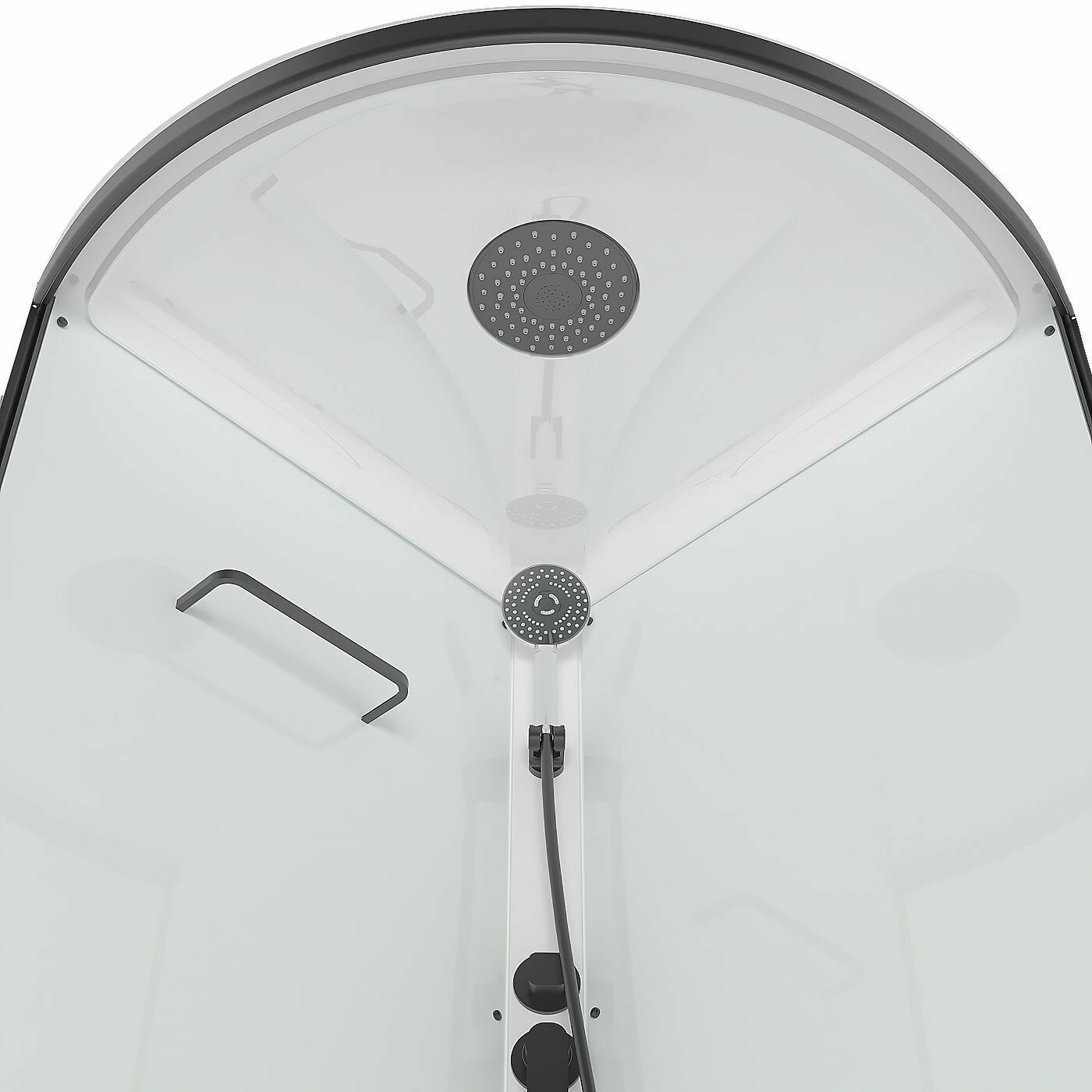 В стандартной комплектации кабины предусмотрены верхний душ, ручной душ, задние стенки белого цвета и профиль Graphite.