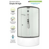 Душевая кабина Domani-Spa Simple 99 high Black accents представляет собой закрытую модель с формой четверти круга. Она оснащена центральной панелью, крышей, поддоном и экраном из санитарного акрила, что обеспечивает гигиеничность и долговечность конструкции.