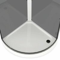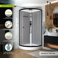 Ширина кабины составляет 90 см, что обеспечивает достаточно пространства для комфортного принятия душа. Материал поддона – акрил, передних стенок – закаленное стекло, задней стенки – серый цвет, а профиля – черный. Высота кабины составляет 218 см.