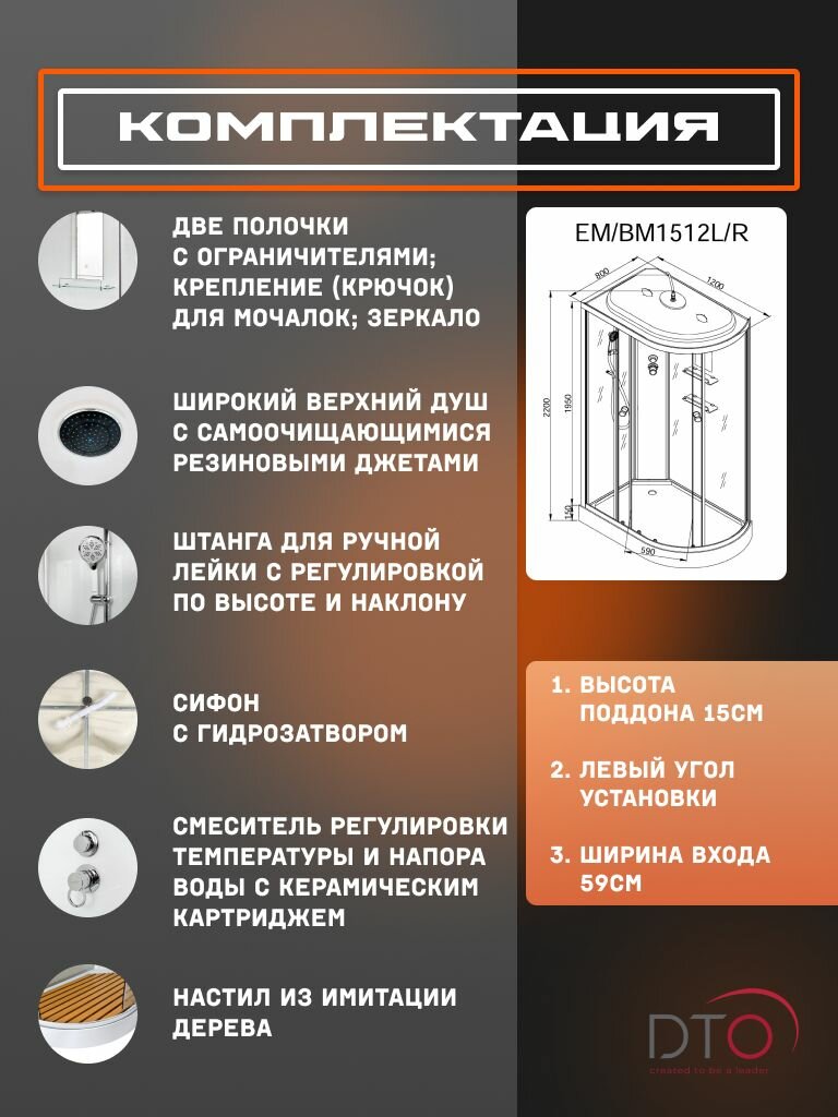 Купить Душевая кабина DTO 120×80 EM1512LLED+GM с гидромассажем с доставкой по всей России. Душевая кабина DTO 120×80 EM1512LLED+GM с гидромассажем: сравнение цен, характеристики, фото, актуальное наличие и цены.