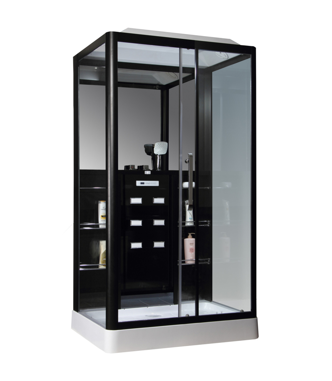 | Комплектация | душевая лейка, поддон, полки, сиденье |