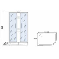 Душевая кабина без крыши мономах Б/К 120/90/24 МЗ L, (1200*900*2060мм), средний поддон, асимметричная
