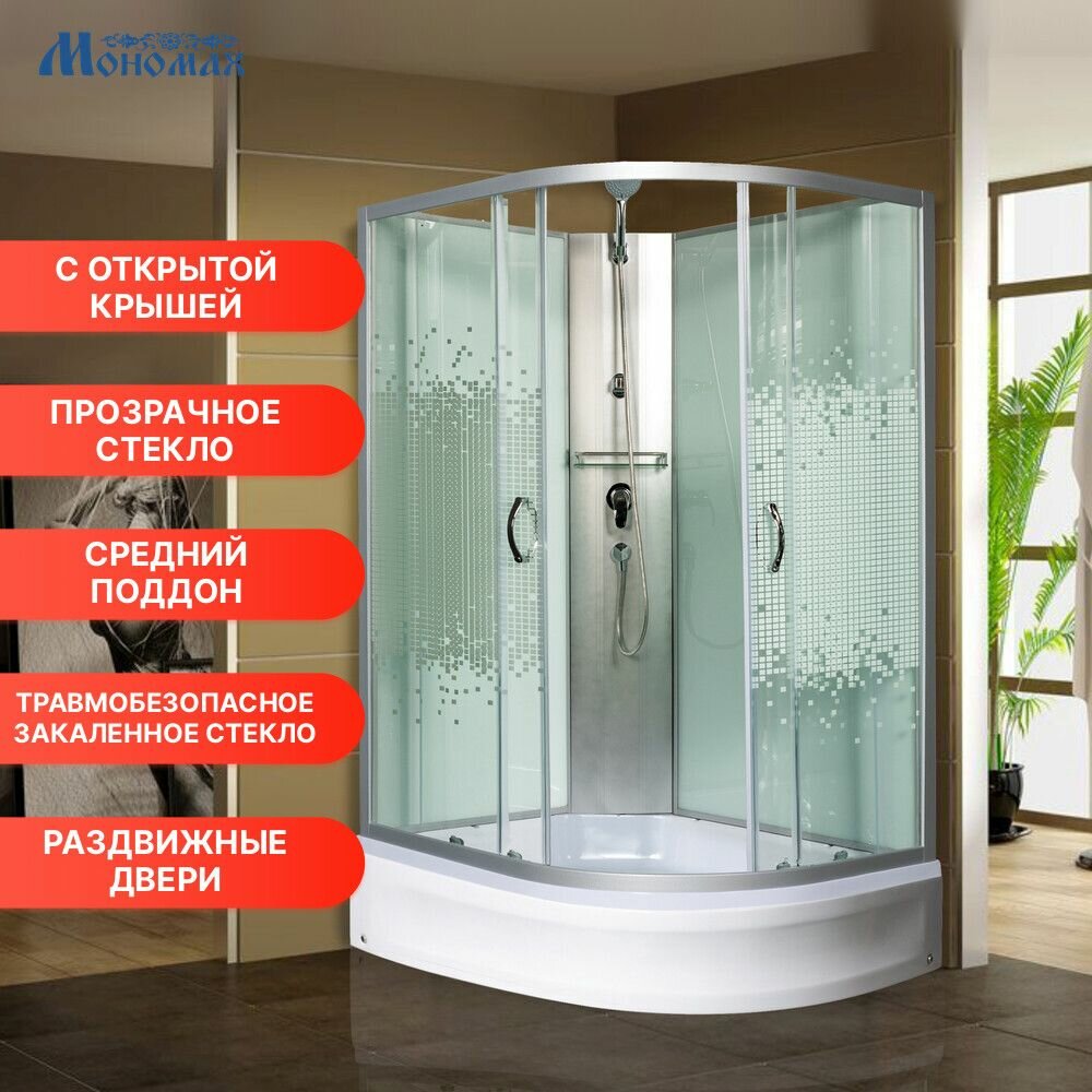 Купить Душевая кабина без крыши мономах Б/К 120/90/24 МЗ L, (1200*900*2060мм), средний поддон, асимметричная с доставкой по всей России.