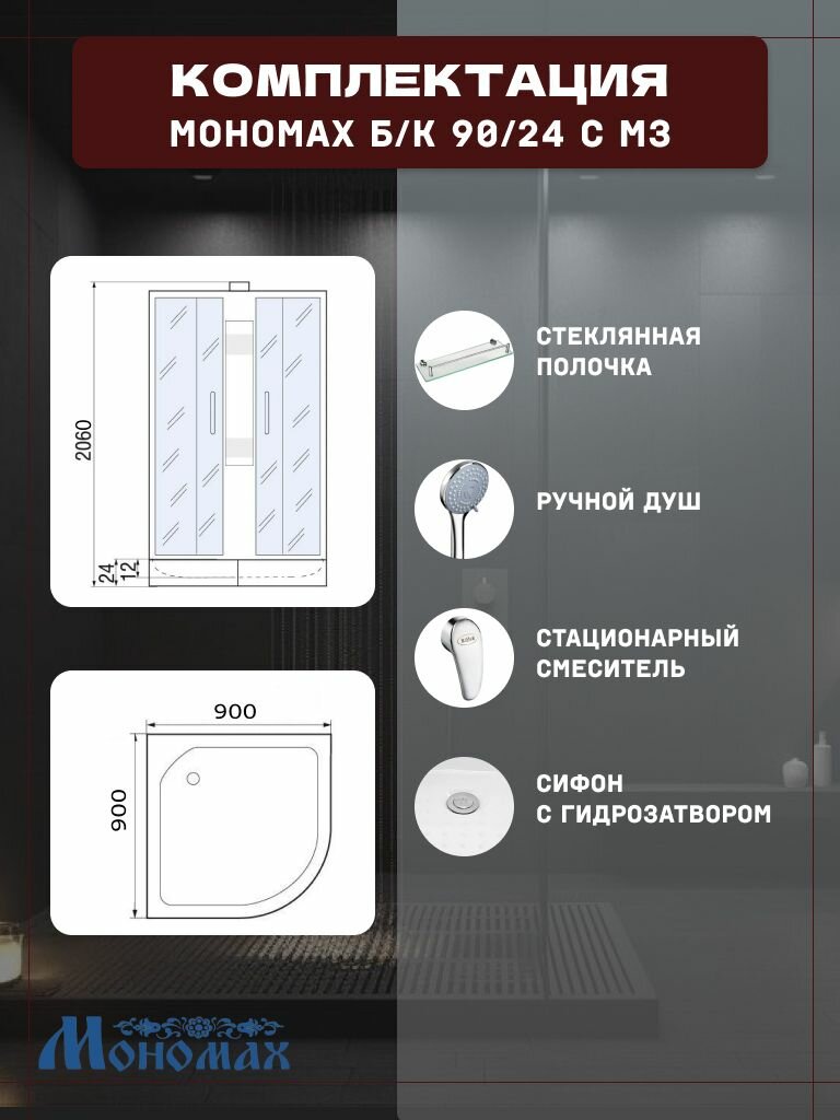 Купить Душевая кабина мономах Б/К 90/24 C МЗ без крыши (90х90х206), средний поддон, стекло узорчатое с доставкой по всей России. Душевая кабина мономах Б/К 90/24 C МЗ без крыши (90х90х206), средний поддон, стекло узорчатое: сравнение цен, характеристики, фото, актуальное наличие и цены.