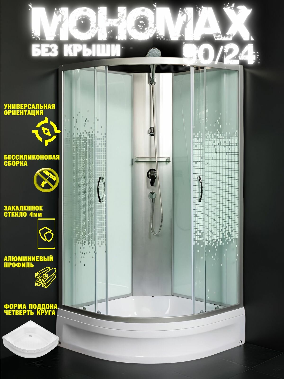 Купить Душевая кабина Мономах Б/К 90/24 С МЗ, симметричная, без крыши, 90 90 206 см, поддон 24 см, стекло с рисунком, хром профиль с доставкой по всей России. Душевая кабина Мономах Б/К 90/24 С МЗ, симметричная, без крыши, 90 90 206 см, поддон 24 см, стекло с рисунком, хром профиль: сравнение цен, характеристики, фото, актуальное наличие и цены.