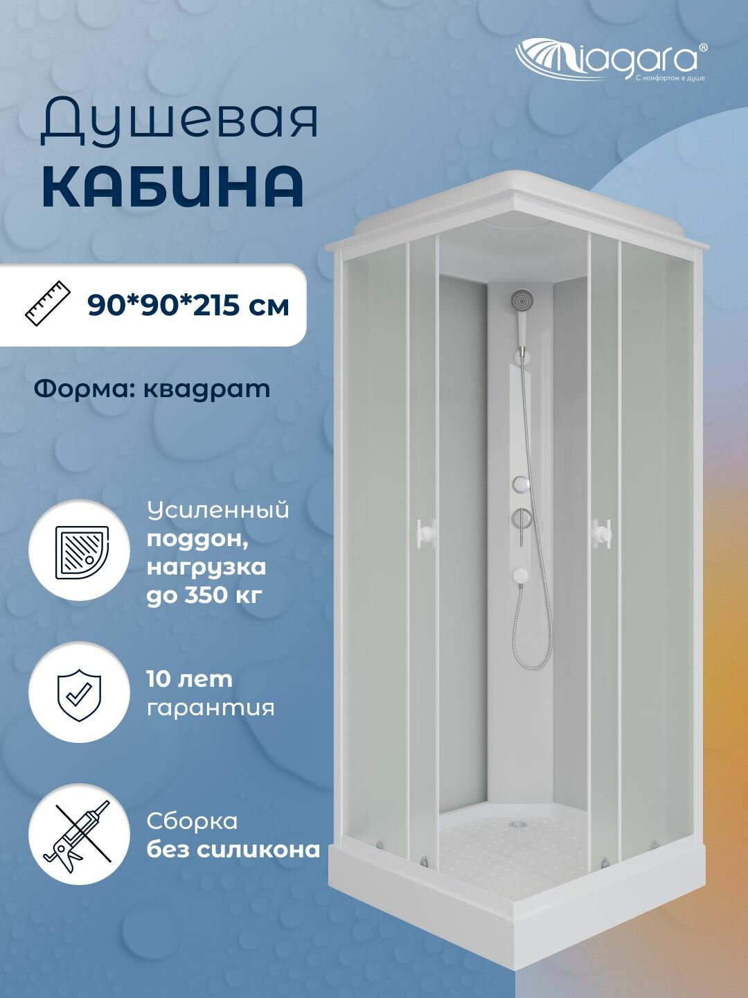 Душевая кабина Niagara Briz (90х90х215), низкий поддон, с крышей