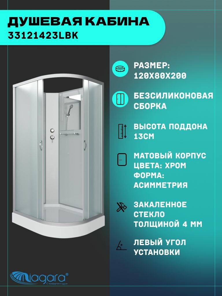 Душевая кабина Niagara Classic NG-3312-14LBK (120х80х200) низкий поддон(13см), стекло матовое,3 места: сравнение цен, характеристики, фото, актуальное наличие и цены.