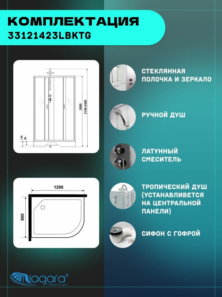 Душевая кабина Niagara Classic NG-3312-14LBKTG (120х80х210) низкий поддон(13см), стекло матовое,3 места: сравнение цен, характеристики, фото, актуальное наличие и цены.