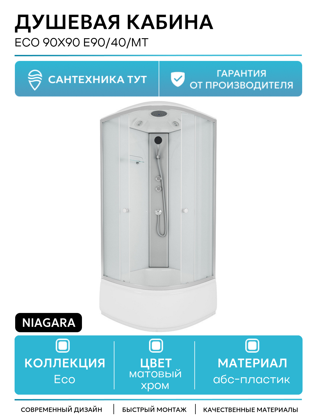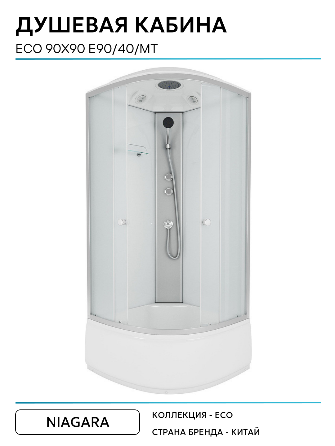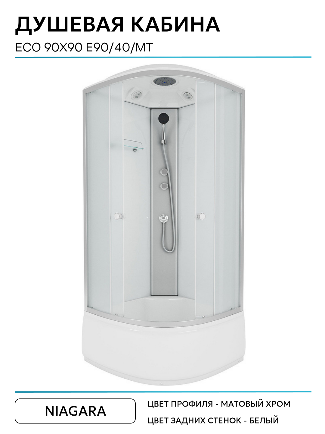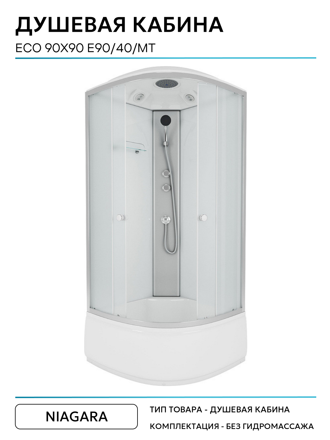 Душевая кабина Niagara Eco 90×90 E90/40/MT без гидромассажа 90х90 без гидромассажа матовый хром Китай: сравнение цен, характеристики, фото, актуальное наличие и цены.