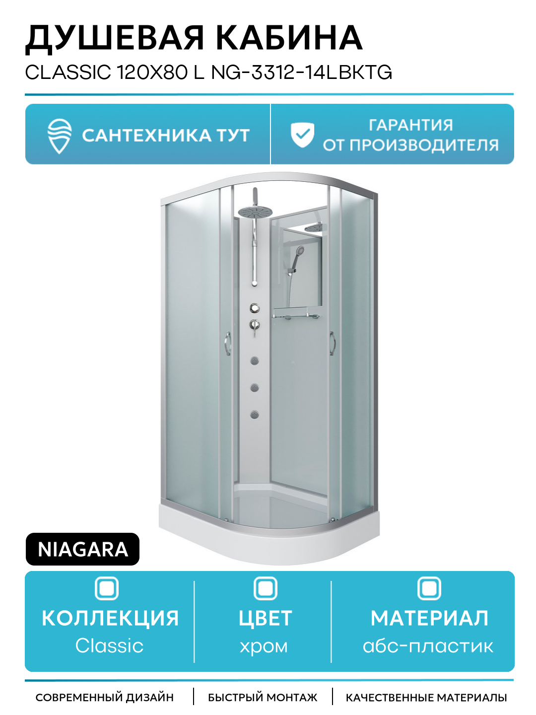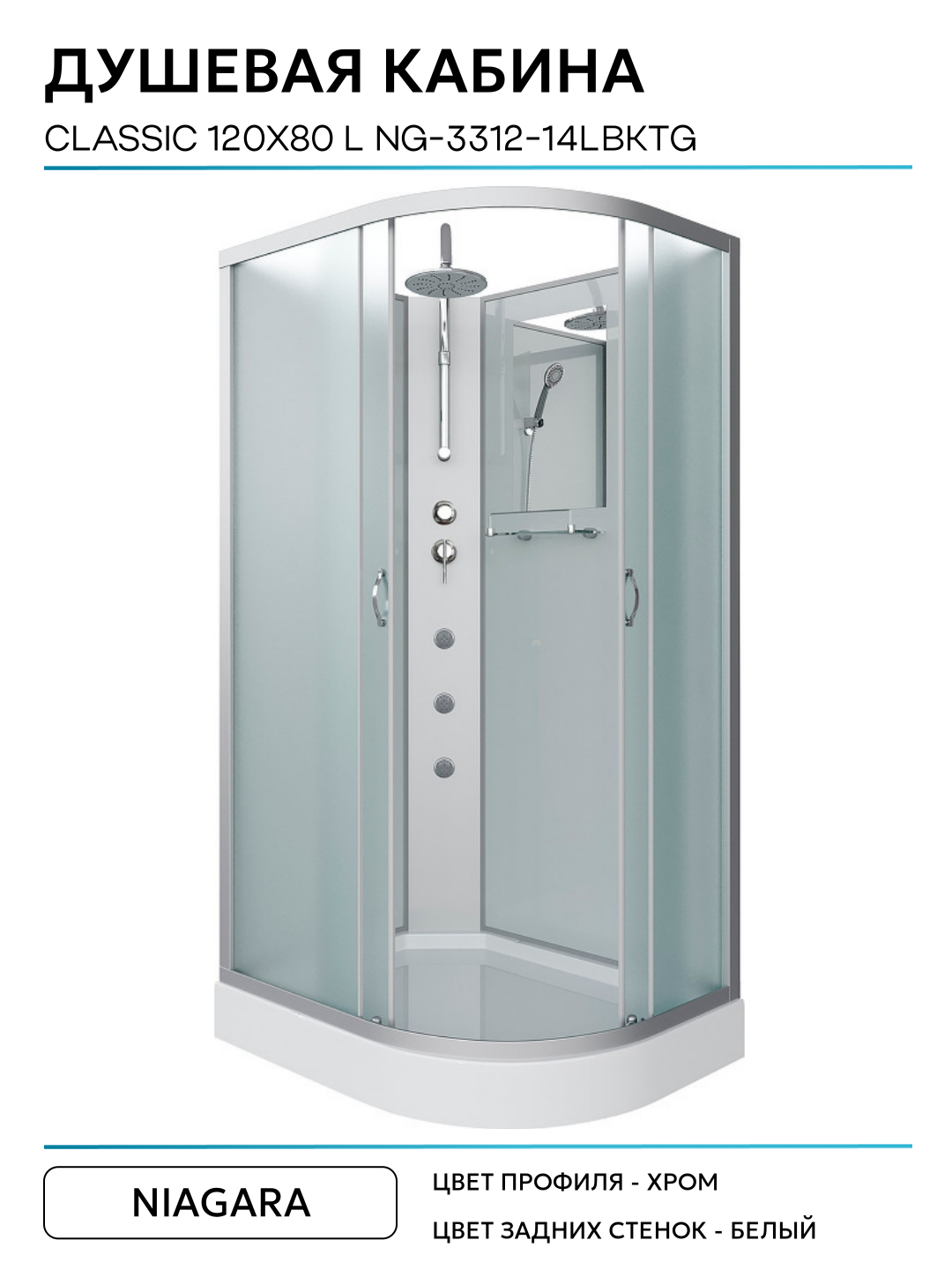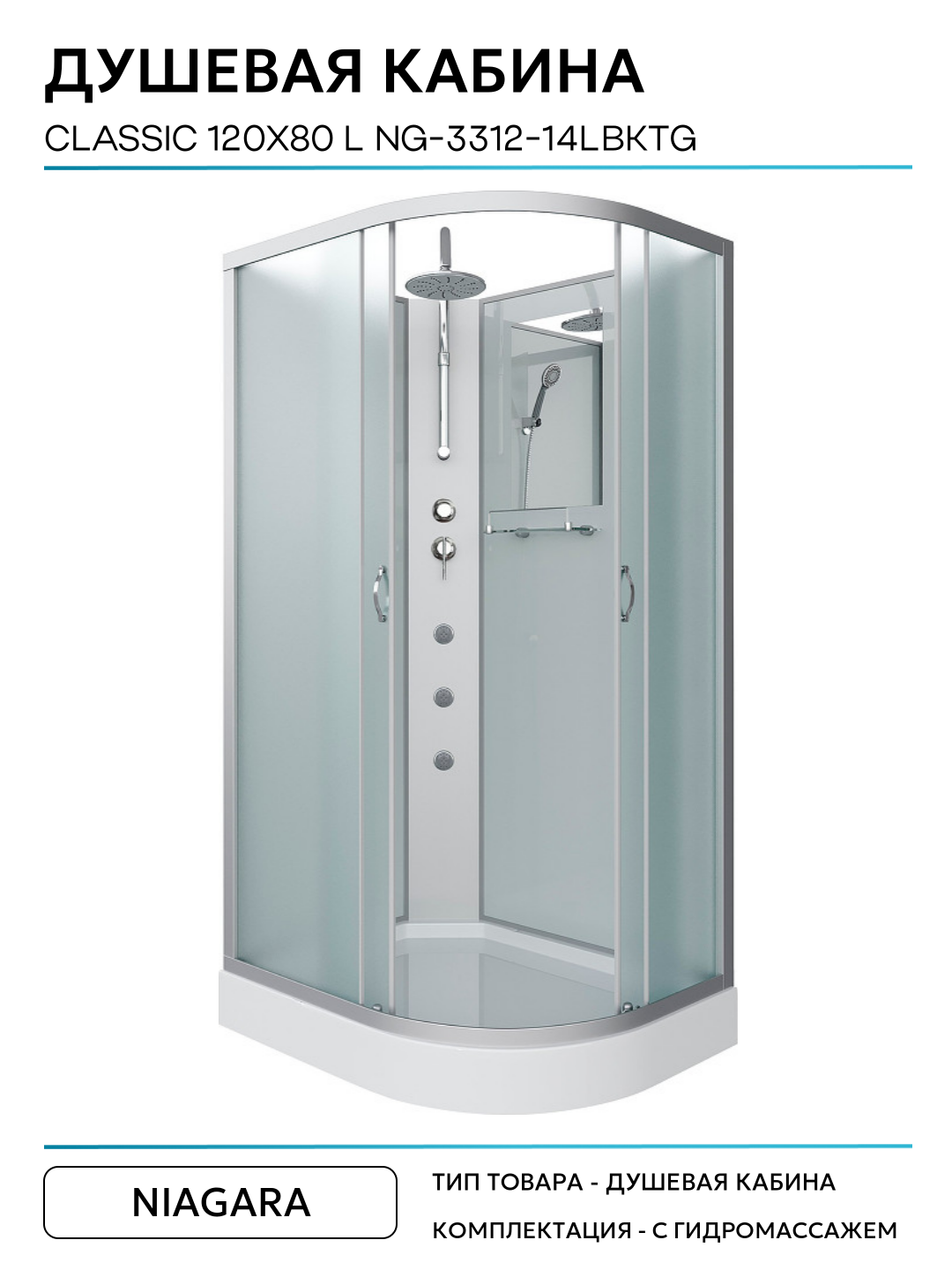 Душевая кабина Niagara Classic 120×80 L NG-3312-14LBKTG с гидромассажем 120х80 с гидромассажем хром Китай: сравнение цен, характеристики, фото, актуальное наличие и цены.