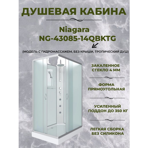Бессиликоновая душевая кабина Niagara NG 43085-14QBKTG Без крыши с тропическим душем и гидромассажем