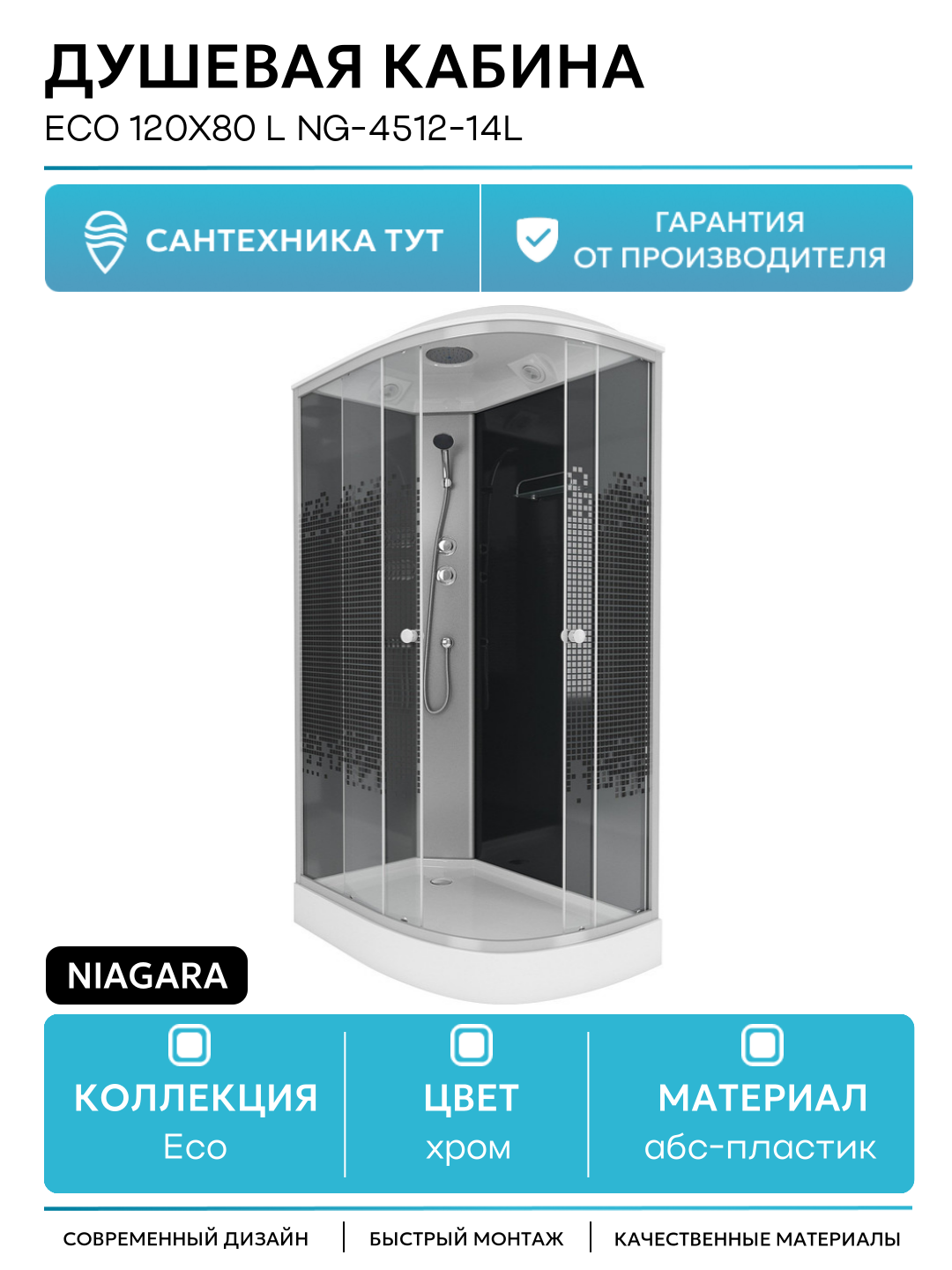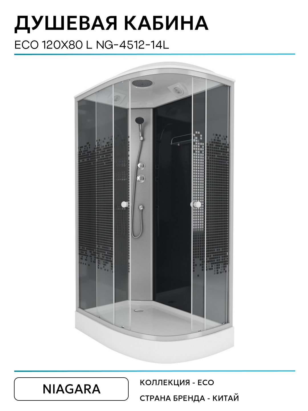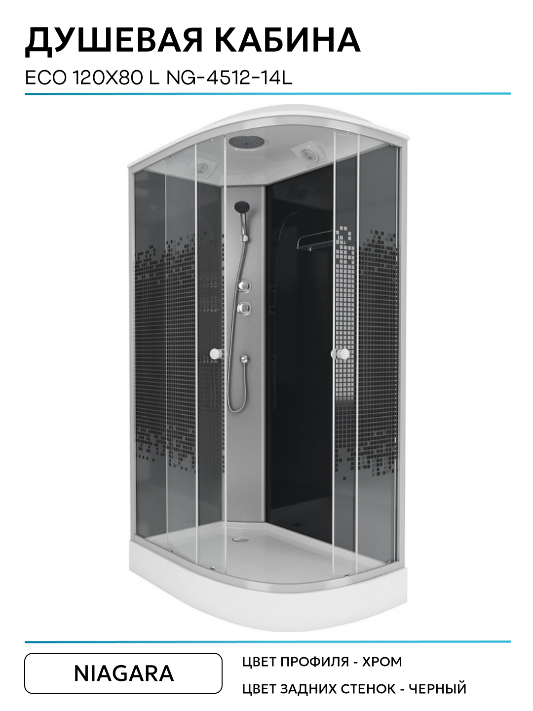 Душевая кабина Niagara Eco 120×80 L NG-4512-14L 120х80 без гидромассажа хром Китай: сравнение цен, характеристики, фото, актуальное наличие и цены.