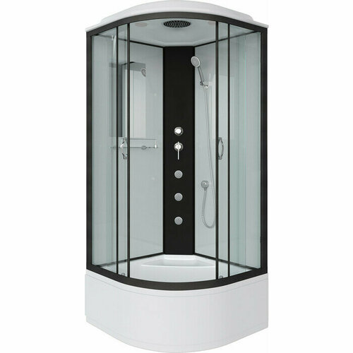 Форма кабины: четверть круга; Ориентация: универсальная; Серия: Classic; Ширина, см: 90; Глубина, см: 90; Высота, см: 215; Вес нетто, кг: 62; Бессиликоновая сборка: да; Исполнение полотна двери: закаленное стекло ; Количество секций двери: 2; Конструкция дверей: раздвижная; Толщина полотна двери, мм: 4; Цвет задней стенки: белый; Исполнение задней стенки: закаленное стекло; Цвет корпуса: черный; Цвет полотна двери: прозрачный; Цвет профиля: черный; Материал полотна двери: закаленное стекло; Материал профиля: алюминий; Материал поддона: авс пластик; Вид поддона: высокий; Высота поддона, см: 40; Глубина поддона, см: 28; Вход: спереди; Ширина входа: 50; Регулируемая высота ножек: 1,5смКомплектация:
