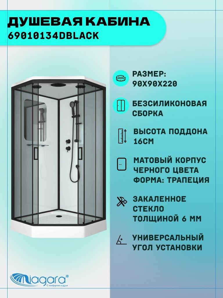 Душевая кабина Niagara Premium NG-6901-01D BLACK (90х90х220) низкий поддон(16 см), черный, стекло тонированное,4 места: сравнение цен, характеристики, фото, актуальное наличие и цены.