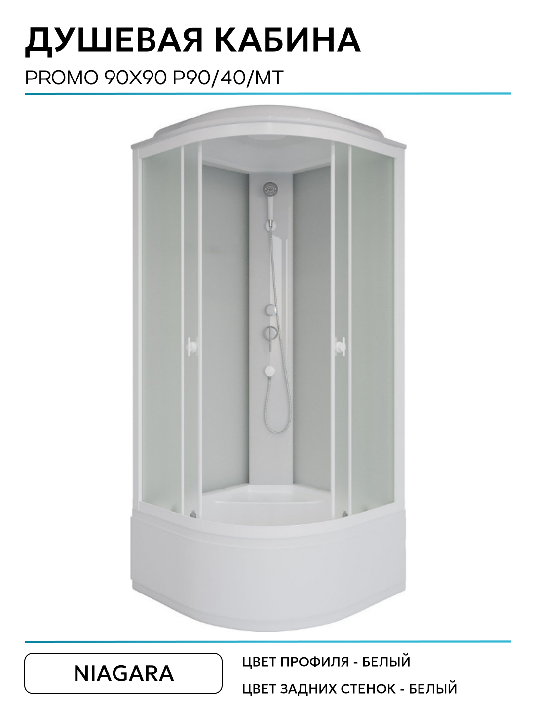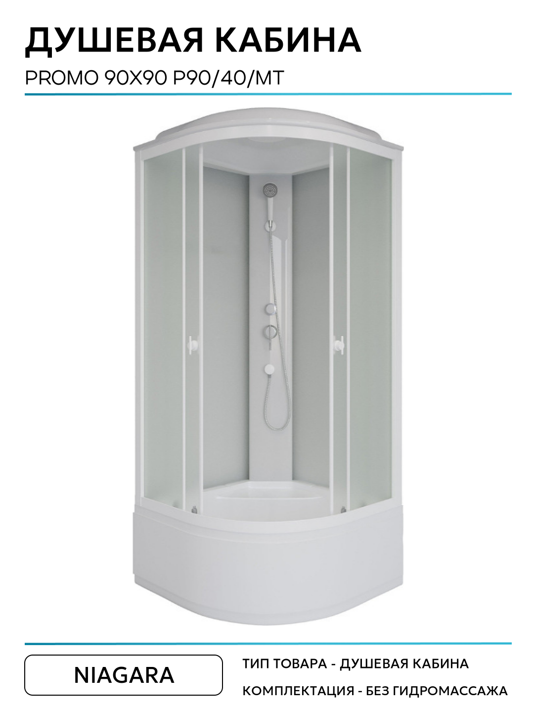 Душевая кабина Niagara Promo 90×90 P90/40/MT без гидромассажа 90х90 без гидромассажа белый Китай: сравнение цен, характеристики, фото, актуальное наличие и цены.