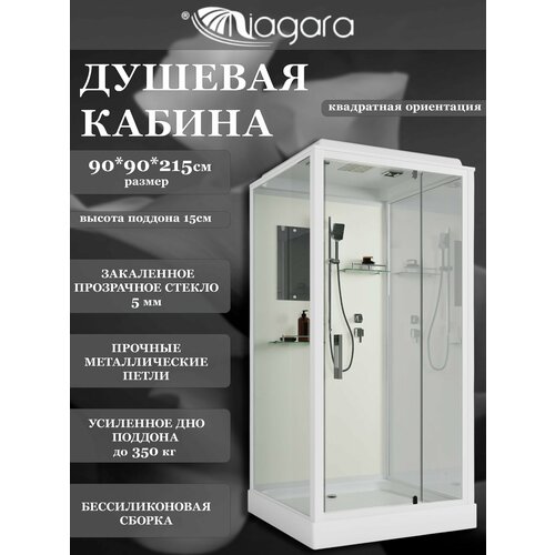 Купить Душевая кабина Niagara Standart ST90/15Q (90х90х215) квадрат, поддон 15см, распашная, проф. белый,3 места с доставкой по всей России.